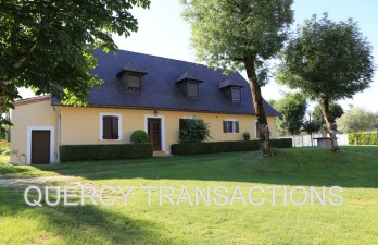 A 20mn au Nord de Cahors, propriété sur 7322m² de terrain. Maison d'environ 284 m² de surface habitable et une grange d'environ 130 m² sur 2 niveaux. Piscine avec abri motorisé. Maison : rez-de-chaussée : entrée, séjour, salle à manger avec cheminée polyflamme, cuisine, buanderie, 3 chambres, salle de bains, wc. Etage : 3 chambres, salle de bains, bureau, salle de jeux, wc. Chauffage mixte bois et fioul, climatisation dans 2 chambres et séjour. Dépendances : grange d'environ 130 m² sur 2 niveaux, atelier, hangar, 2 appentis, local chaufferie, local piscine, volière, citerne.