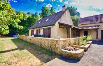 A 5 min du centre ville de Sarlat, grande maison de 158 m2 offrant une entrée, une cuisine indépendante, une pièce à vivre avec cheminée, salle de bains, wc, 2 chambres; à l'étage 3 chambres de 13,60/ 18,55 et 15,15 m2, une salle de bains, 1 wc, garage indépendant de 35 m2, cave ainsi qu'un appartement de 40 m2 indépendant pouvant être loué à l'année ou en saisonnier, diverses terrasses, terrain clos de 4214 m2 , parking, chauffage central gaz de ville, double vitrage, fosse septique