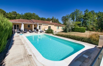A 20 min au sud de Sarlat, sur les hauteurs, maison de plain pied de 2005 offrant 160 m2 agencée comme suit:- grande pièce à vivre de 70 m2 avec cuisine ouverte, 4 chambres ( 2 de 14 m2 et 2 de 13,5 m2), 2 salles de bains, 2 wc, un cellier, garage de 26 m2, terrasse couverte, terrain d'environ 3000 m2 joliment fleuri agrémenté d'une piscine 9,6*4,6 m avec abri télescopique, garage indépendant de 42 M2Double vitrage, fosse septique, chauffage électrique et bois, pas de travaux à prévoir