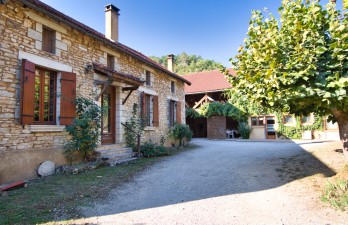 A 20 min au sud de Sarlat, dans un village avec commerces et école, ensemble composé d'une maison principale de 90 m2 agencée comme suit: entrée, 3 chambres, 1 salle d'eau, 1 wc, dressing, salon avec insert, cuisine, salle à manger, cellier, grenier et cave ainsi qu'un gite de 60 m2 avec pièce à vivre et cuisine ouverte, 2 chambres, salle d'eau et wc, terrasse couverte, grenier, hangar de 100 m2 au sol sur un terrain clos de murs de 635 m2