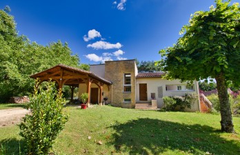 Sarlat centre, dans un quartier résidentiel au calme, maison d'architecte lumineuse de 157 m2 offrant une entrée, une cuisine indépendante ( possibilité de l'ouvrir), un bureau, un wc, une suite parentale avec salle de bains en mi étage, en rez de jardin 3 chambres, une salle de bains, un wc, le tout sur un terrain de 2117 m2 arboré- abri voiture attenant, double vitrage, chauffage gaz de ville, tout à l'égoutLes informations sur les risques auquel ce bien est exposé sont disponibles sur le site Géorisques www.georisques.gouv.fr