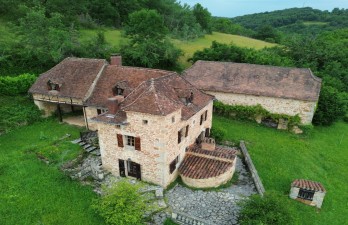 Ensemble immobilier exceptionnel, cette belle propriété quercynoise tout en pierre a su garder son authenticité. Elle est implantée sur un terrain d'environ un hectare dans un cadre nature donnant sur la vallée du Lot, sans voisins proches et à moins de 10 km de FIGEAC. Elle offre un minimum de 215 m² habitables pour une surface au sol de plus de 300 m².