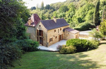 Plus de 4 ha protègent l'ensemble. La maison est bien entourée par une cour fermée avec accès par porche et portail en fer forgé. Son terrain clos sur une partie se polonge par une jolie forêt autour de la maison. Par un chemin ombragé on accède à un sous bois bien entretenu ou vous pourrez en toute sérénité, vous ressourcer, déjeuner, lire, croiser certainement un chevreuil ou un renard ! Une grande prairie descend lentement vers la vallée traversée par un petit ruisseau. D'anciennes carrières de pierres sont accessibles et pourraient accueuillir, ateliers, garage... Située entre deux bourgs avec tous commerces dont le Bugue traversé par la Vézère.