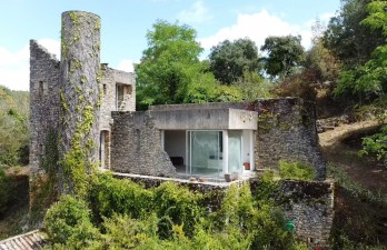 A flanc de coteau, vue sur la Vallée Vézère, maison d'architecte construite en pierre allie le moderne et l'ancien.