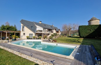 Le terrain est agréablement paysagé en intégrant notamment un bel espace piscine et un pigeonnier en pierre.