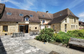 Cet ensemble de maisons périgourdines avec dépendances, situé dans un hameau historique du 18ème siècle, est entièrement rénové en 2014 dans un style moderne et épuré.