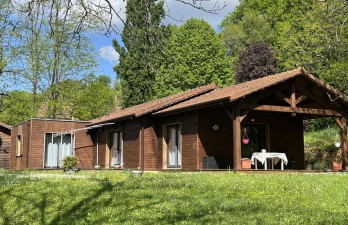 En Vallée Vézère, à 5 minutes de Montignac-Lascaux, implantée dans un environnement calme et boisé, cette maison en bois récente offre environ 135 m2 habitables de plain-pied composés d'une vaste et lumineuse pièce à vivre donnant sur deux terrasses dont une couverte et trois chambres dont une en suite. Un double-garage non attenant complète la propriété.