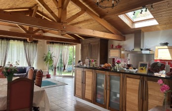 Au cœur de la maison, vous trouverez une vaste pièce à vivre de 62 m² avec une cuisine ouverte, pensée pour les moments en famille ou entre amis. Cet espace central, baigné de lumière, communique avec un salon indépendant de 40 m², offrant ainsi une vraie séparation des ambiances.