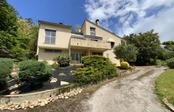 Située en position dominante avec un magnifique panorama, cette belle maison d'architecte nichée dans un écrin de verdure saura séduire les amateurs de biens uniques et de caractère. Développant 155 m² habitables, elle propose en rez de chaussée: un grand cellier, un garage et une pièce complémentaire à aménager selon vos envies: salle de sport, atelier...Au 1er étage : une cuisine aménagée et équipée ouverte sur une spacieuse et lumineuse pièce à vivre, une chambre, une belle salle de bain avec baignoire, douche et WC et un bureau de 14 m² transformable aisément en chambre.Au second étage : deux chambres, salle de douche avec WC et un agréable espace cosy en mezzanine .A l’extérieur, le jardin soigneusement aménagé accueille la piscine, son pool house avec cuisine aménagée et toilette et un car port aux dimensions d'une camping car. Les terrasses permettent de profiter du soleil à toute heure de la journée.Une situation idéale qui allie confort, intimité et proximité.