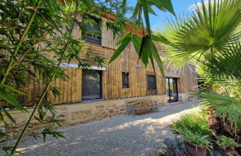Sur hauteur, au calme mais non isolé, à env 2km du village et 13 km du Bugue.C 'est un ancien hangar à tabac rénové au soubassement de pierres apparentes et au bardage de bois, largement ouvert sur son terrain de 3036m2, plat et clos avec portail automatique. Ce terrain s'organise en un jardin d'agrément, verger, potager qu'il faudra s'attendre à partager avec les oiseaux, les hérissons et les écureuils ! Mais entrons, largement éclairée par 2 baies vitrées, la pièce à vivre de 57m2 comprend : Un espace Cuisine aménagée et équipée, salle à manger, salon autour d'un poêle à bois, Chambre, Salle de bains, WC, buanderie et vaste pièce (dans l'ancien garage) à usage de hall d'entrée, cuisine d'été, cellier. Depuis le salon, un bel escalier de bois donne accès à l'étage avec Mezzanine /Palier desservant 3 chambres de min 20m2, salle d'eau, wc.