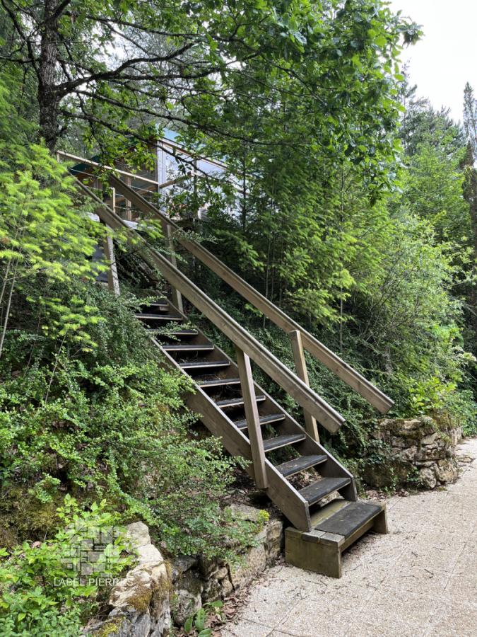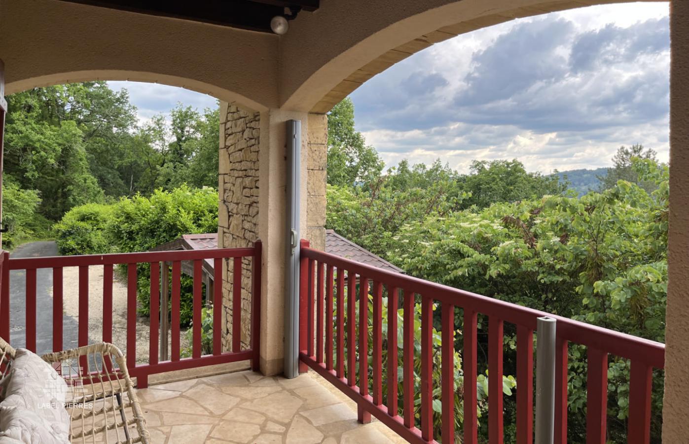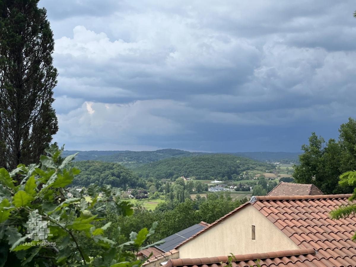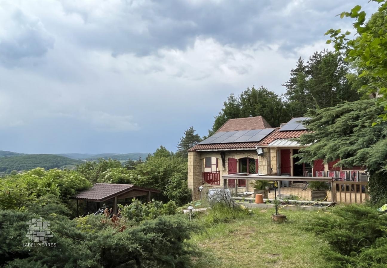 Exclusivité! Nichée dans un coin de verdure sur les hauteurs de Montignac avec très belle vue, propriété comprenant une grande maison principale et une maison d'amis sur 1,6 ha. Piscine couverte. Nombreuses terrasses.