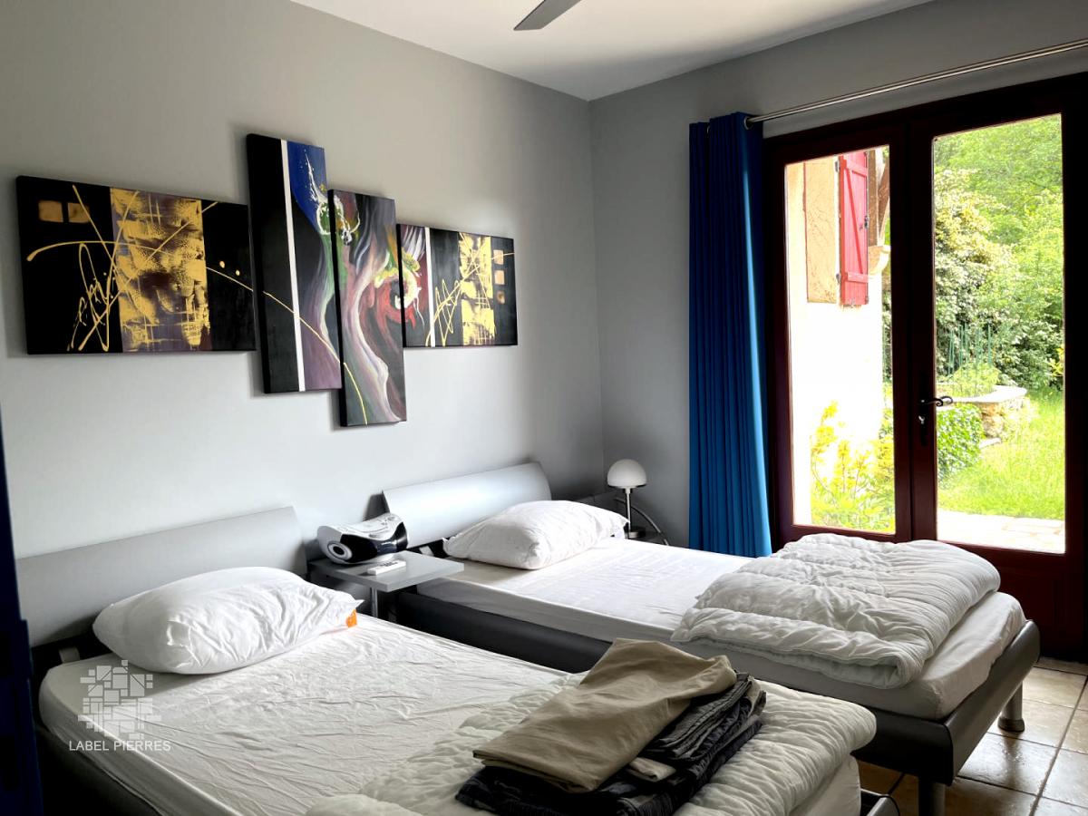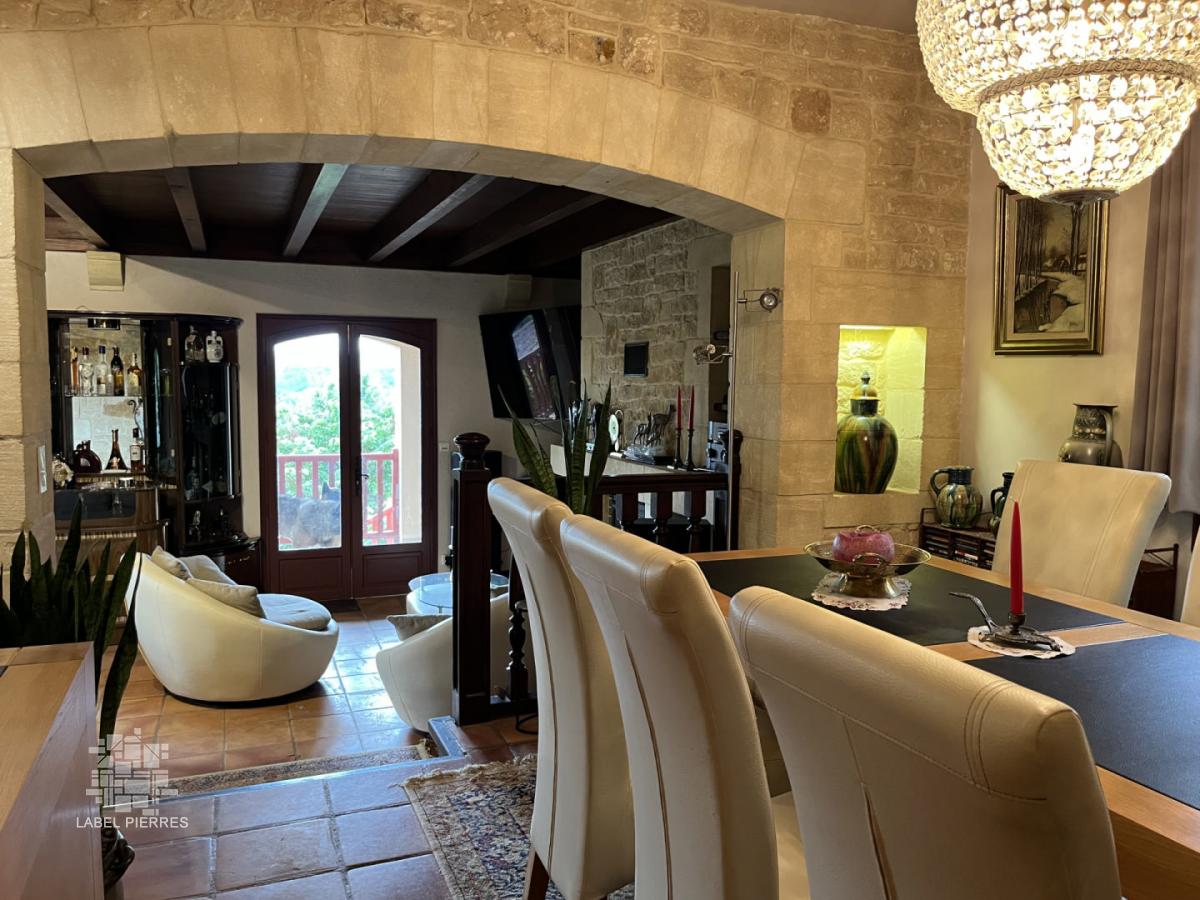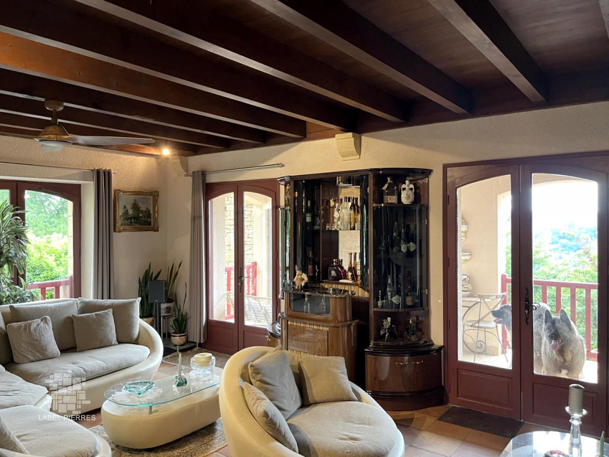 Située à moins de deux kilomètres du centre-ville de Montignac, cette propriété construite sur les hauteurs avec vue dominante, sur 1,6 ha se compose d'une maison principale et d'une maison d'amis (ou gîte). Elle bénéficie d'un superbe emplacement, très calme et sans voisin proche. La grande maison offre une entrée, cuisine, salle à manger/séjour, 3 chambres, 2 salles de bains (douche et baignoire), dressing. La maison d'amis, elle propose une grande pièce de vie, salle d'eau et chambre en mezzanine. En rez-de-jardin, on trouve la salle fitness, une chambre d'appoint, remise, buanderie, garage et cave à vin. En contre-bas de la maison, la piscine chauffée de 14x4, est abritée par une structure en bois avec panneaux coulissants et/ou amovibles. Nombreuses terrasses tout autour. Bureau indépendant.Terrain clôturé pour les animaux sur le haut de la propriété. Les informations sur les risques auxquels ce bien est exposé sont disponibles sur le site Géorisques: www.georisques.gouv.fr