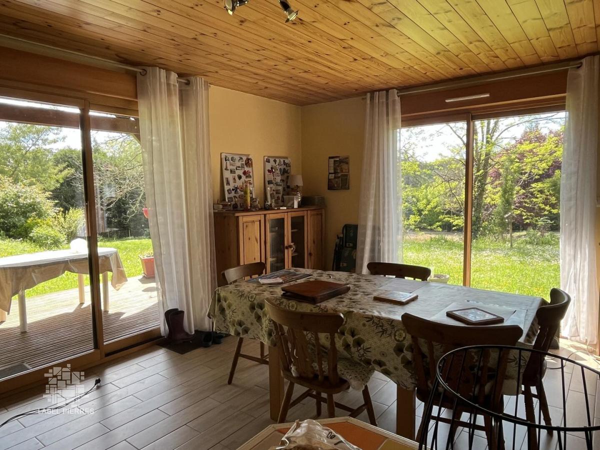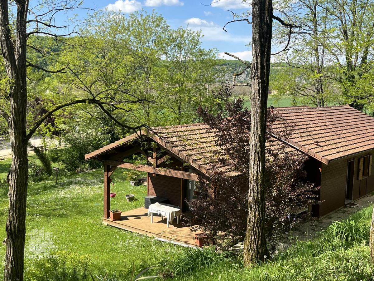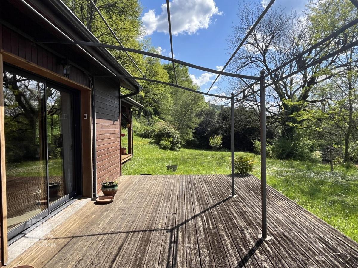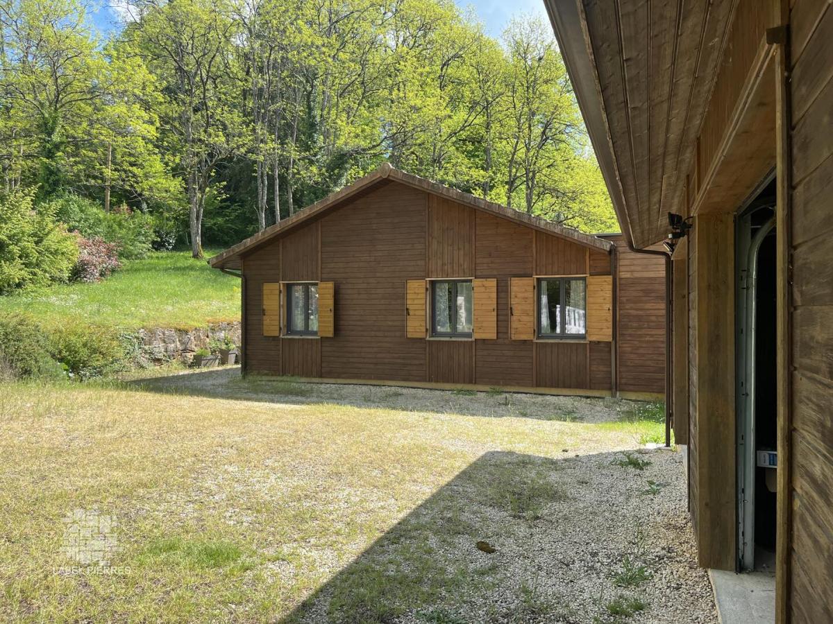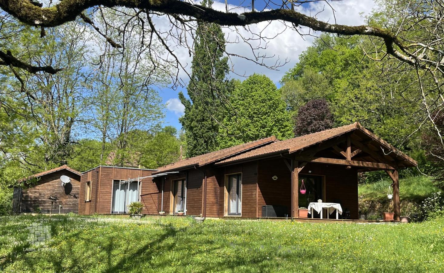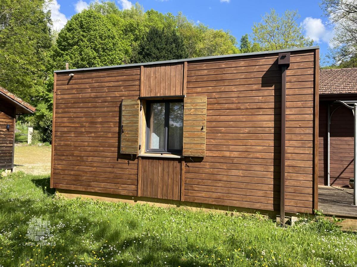 En Vallée Vézère, à 5 minutes de Montignac-Lascaux, maison en bois récente et de qualité avec double garage. 135 m2 habitables de plain pied sur terrain arboré d'environ 2300 m2.