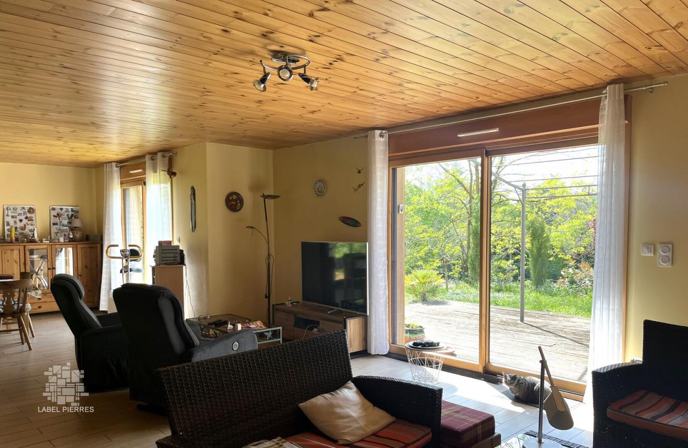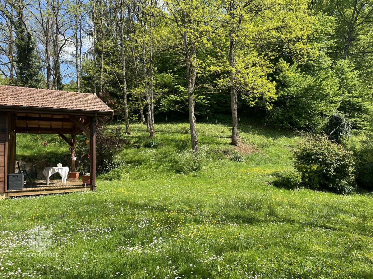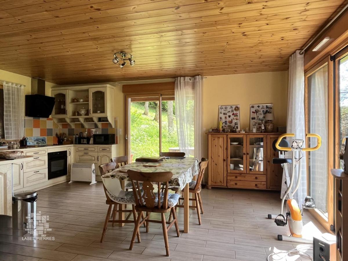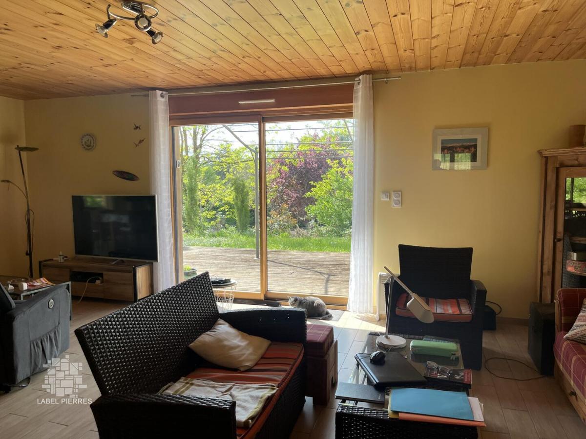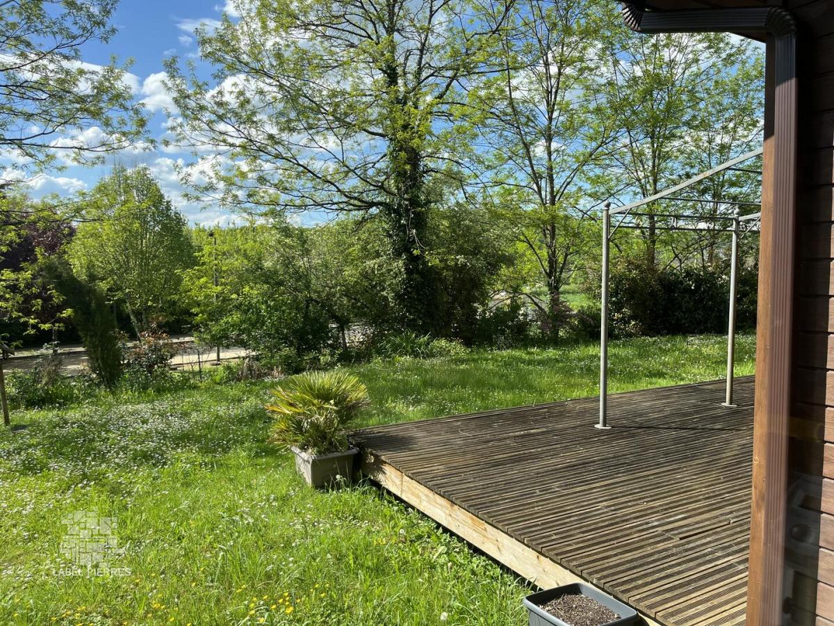En Vallée Vézère, à 5 minutes de Montignac-Lascaux, maison en bois récente et de qualité avec double garage. 135 m2 habitables de plain pied sur terrain arboré d'environ 2300 m2.