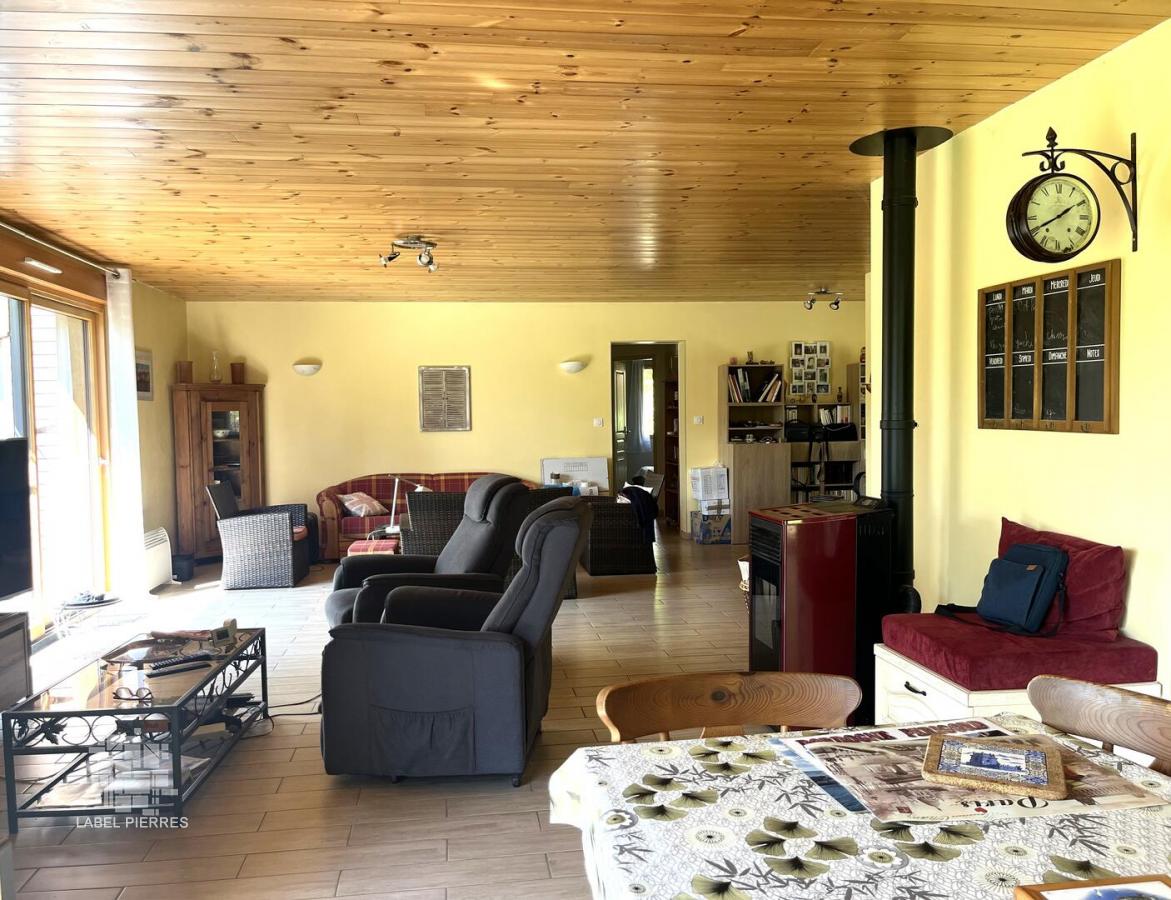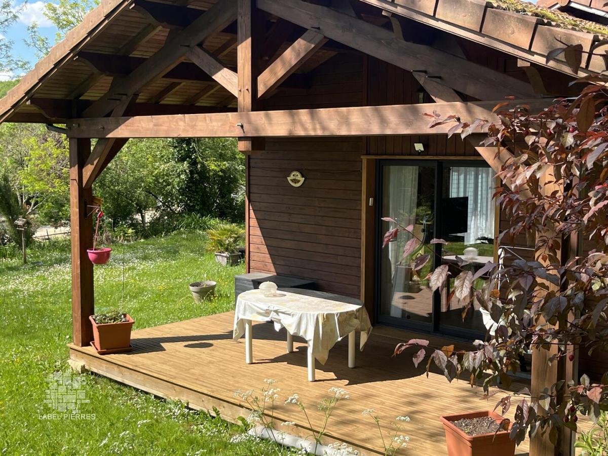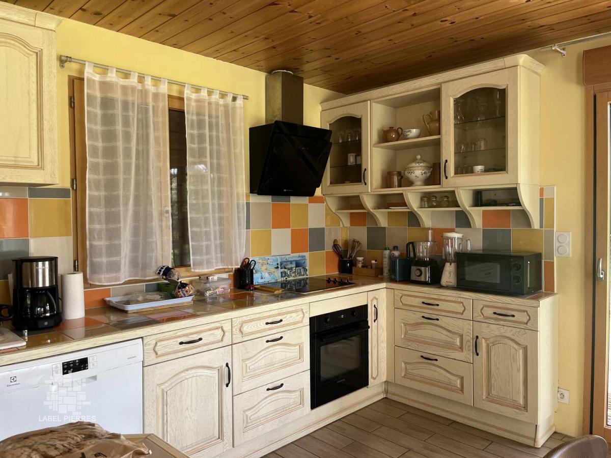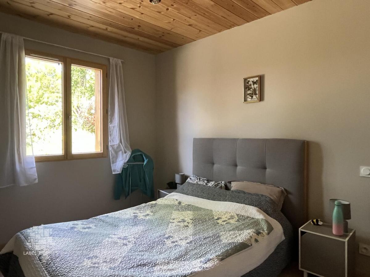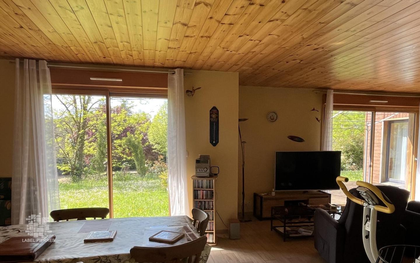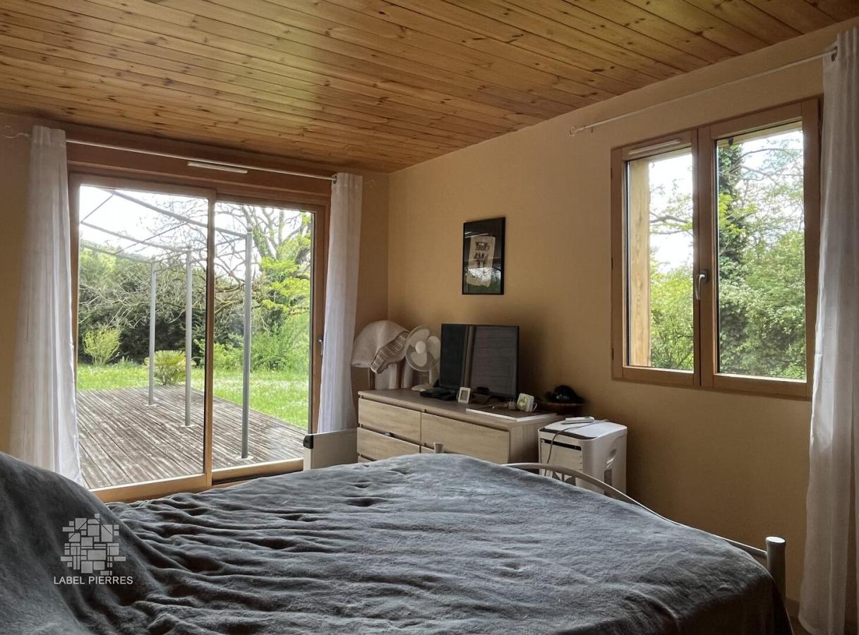 En Vallée Vézère, à 5 minutes de Montignac-Lascaux, maison en bois récente et de qualité avec double garage. 135 m2 habitables de plain pied sur terrain arboré d'environ 2300 m2.