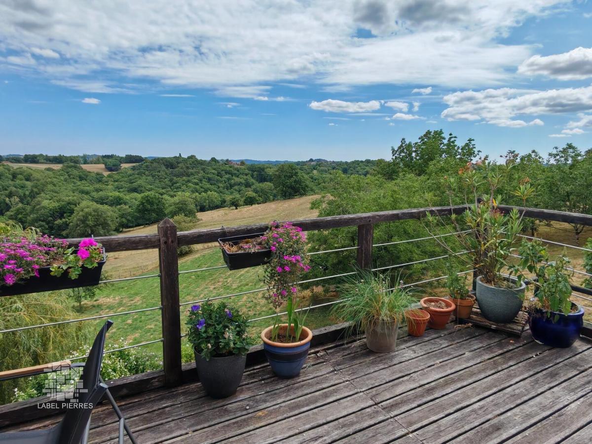 Vue panoramique depuis le séjour de 44m² de cette maison périgourdine, rénovée il y a 10 ans, qui vous propose 4 chambres dont 1 au rdc. Au calme, dans une impasse sans vis à vis, un terrain de 3000m² complète l'ensemble avec piscine, un puits, 2 terrasses et des petites dépendances de stockage. Travaux d'extérieur à prévoir. A 10 mins d'Hautefort et 15 mins de Terrasson. Les informations sur les risques auxquels ce bien est exposé sont disponibles sur le site Géorisques: www.georisques.gouv.fr