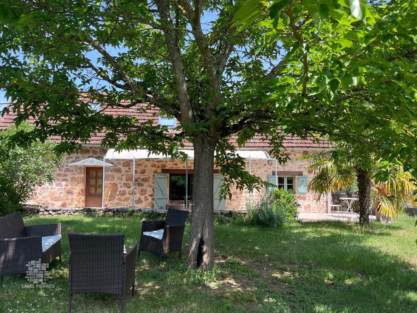 A quelques kilomètres de Figeac, sur les hauteurs à la sortie d'un petit village typique de la vallée du Célé, la maison de vacances idéale avec jardin clos et piscine.