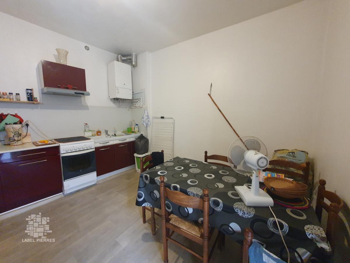 • Pièce à vivre 35m² avec espace cuisine (avec cuisinière, frigo top, lave-linge)- accès à une cour de 12m²