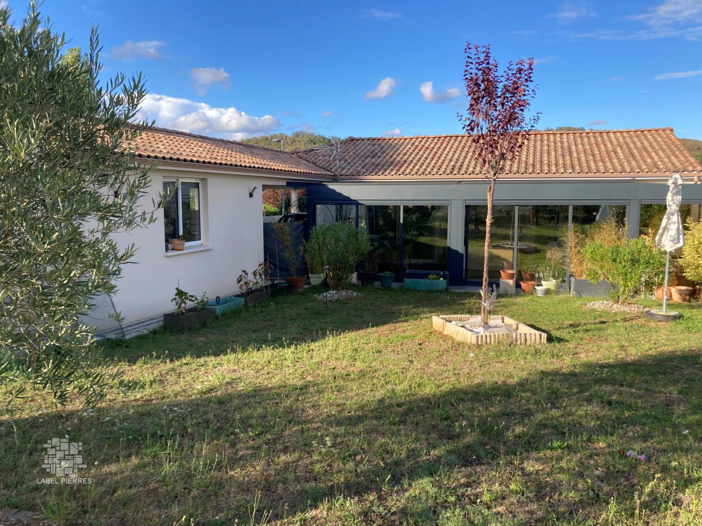 Cahors 1ere périphérie maison plain-pied d'environ 87 m² sur un terrain clos et arboré d'environ 670 m². Entrée, wc, séjour (cuisine ouverte Hacker) donnant sur une véranda bio climatique (28 m² automatisée) couloir, 3 chambres avec placard, salle d'eau. Carport (37 m²) prolongé par un garage. Chauffage pompe à chaleur (air-air) Fenêtres PVC double vitrage, baies Alu, volets pcv électriques. Terrain clôture grillage et sur la façade nord et Est coté Ouest et Nord clôture en Alu. Portail entrée (visiophone) et garage électrique. Les informations sur les risques auxquels ce bien est exposé sont disponibles sur le site Géorisques www.georisques.gouv.fr