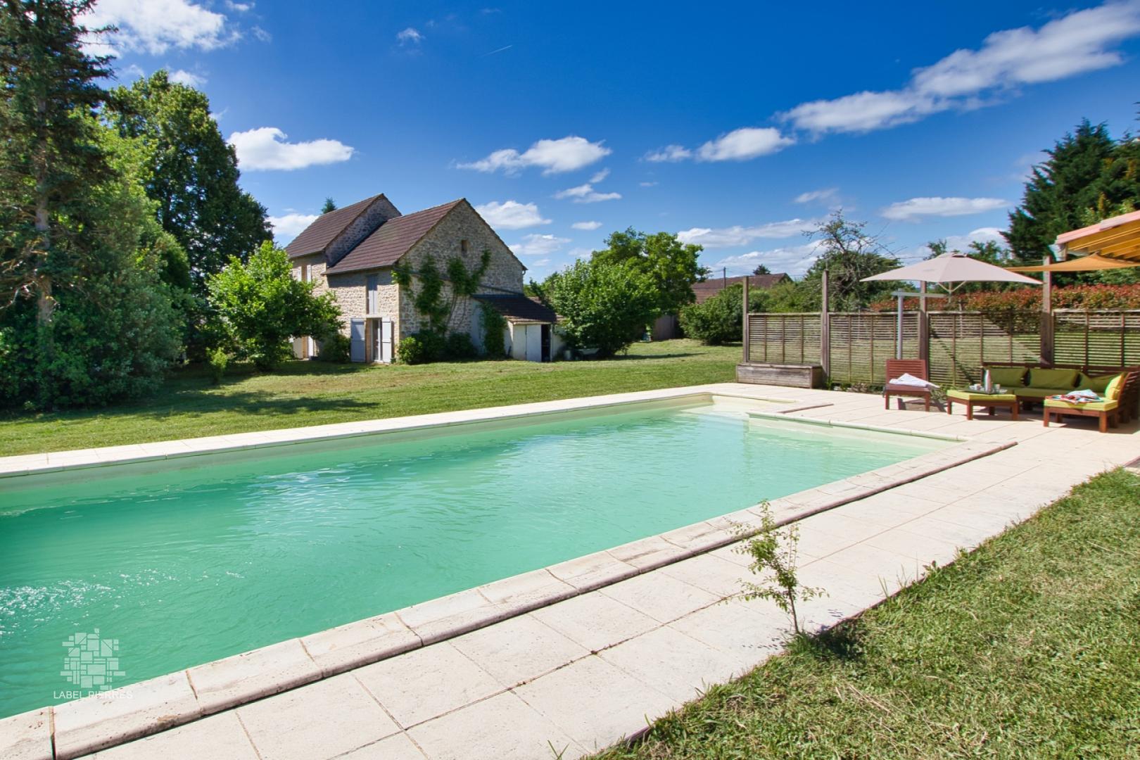 Idéalement située, à 10 km à l'est de Sarlat, au coeur de la vallée de Dordogne, agréable maison en pierre de 94 m2 comprenant une pièce à vivre de 41 m2 avec cuisine ouverte; à l'étage un palier, une salle de bain, un wc, 2 chambres et un bureau ainsi qu' une ancienne grange en pierre attenante avec accès direct à la pièce à vivre dont une partie a été aménagée avec salle d'eau et arrière-cuisine ( possibilité de créer une chambre de plain pied) , le tout sur un terrain plat de 4999 m2 agrémenté d'une piscine chauffée avec pool-house Double vitrage en partie, chauffage électrique, fosse septique de 2019 Les informations sur les risques auxquels ce bien est exposé sont disponibles sur le site Géorisques: www.georisques.gouv.fr