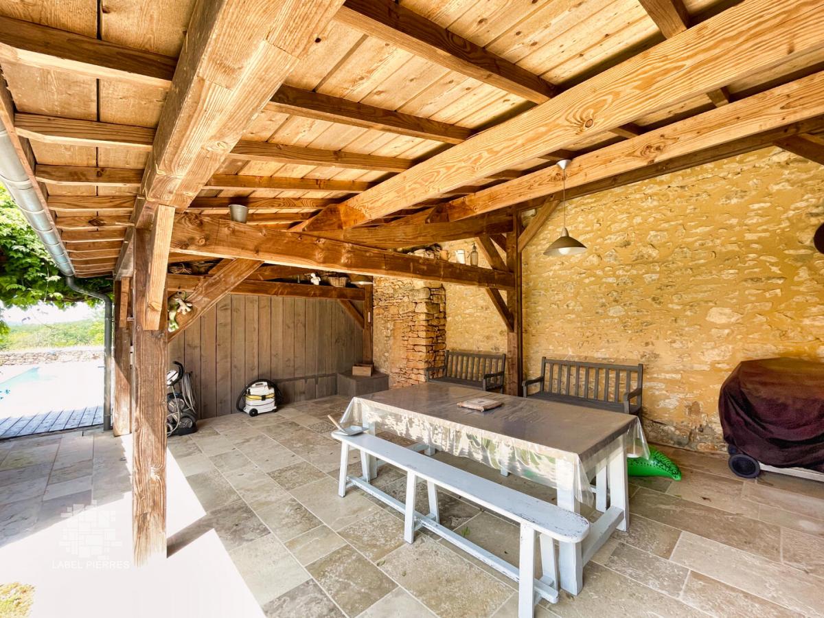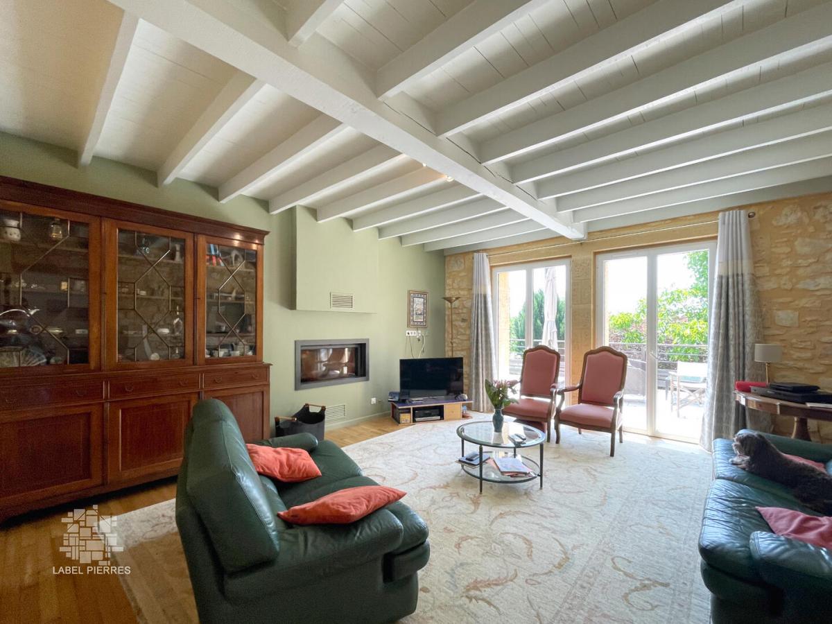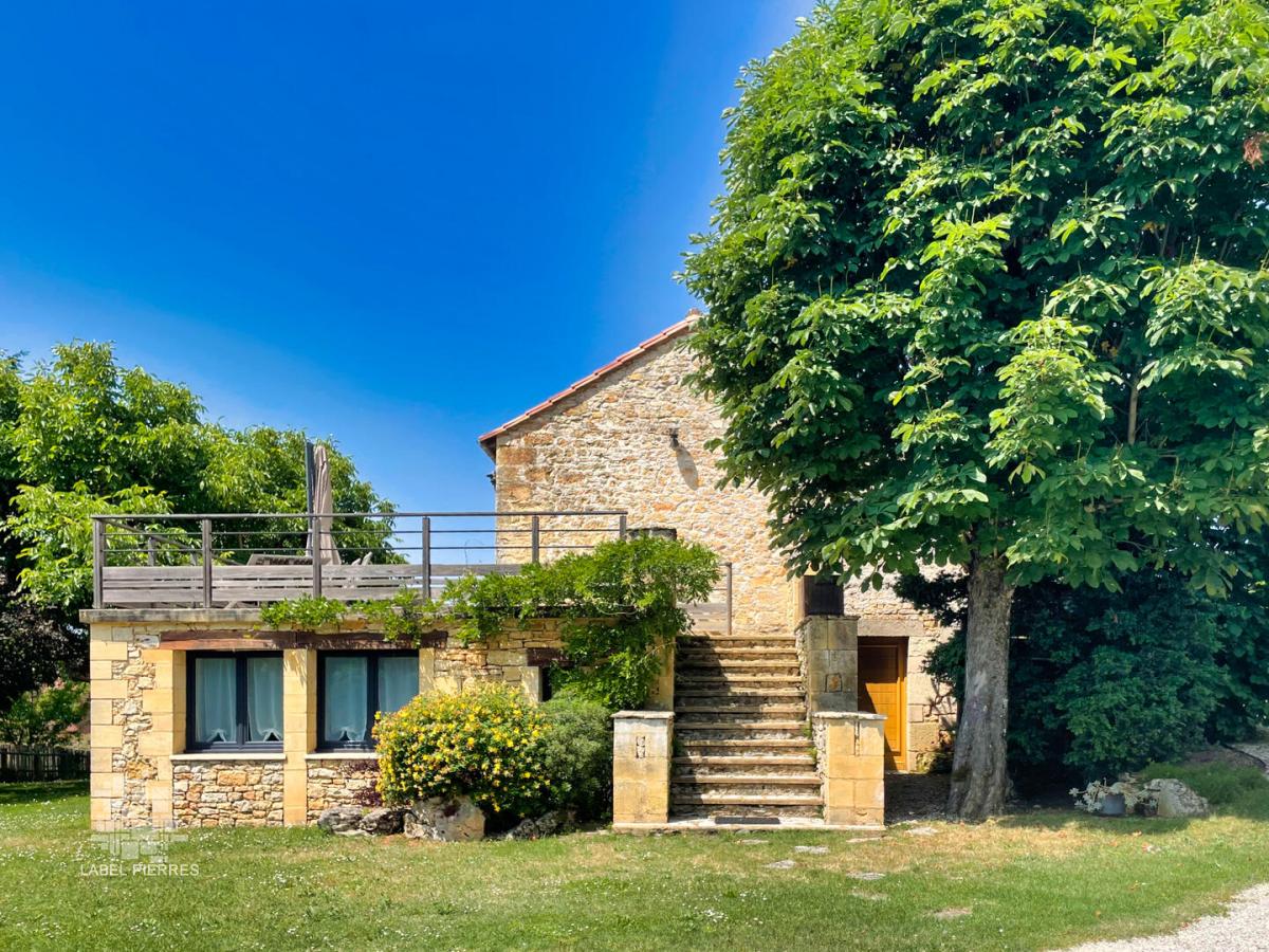 A moins de 15 minutes de Sarlat, au calme, sur les hauteurs de l'un des plus beaux villages du Périgord noir avec commerces et école, je vous invite à découvrir ce magnifique ensemble en pierre en parfait état avec piscine et gîte. Erigé au milieu d'une parcelle clôturée de 2319 m2, il se compose d'un maison d'habitation offrant une entrée, une cuisine équipée, un séjour/salon avec cheminée et climatisé, ouvert sur une terrasse panoramique, 2 chambres avec placard, une des chambres bénéficie de la climatisation et d'une terrasse privative, au 1er étage une chambre climatisée ; et en rez de Jardin d'un gite d'environ 41 m2 avec une cuisine équipée donnant sur la pièce principale , une chambre, une salle d'eau et wc. Afin de parfaire ce bien, vous trouverez une piscine au sel, une terrasse couverte et carrelée pour les belles soirées d'été, et les repas entre amis, un garage avec car port pour deux véhicules , des dépendances en pierre. Le terrain est clos, et vous ouvre ses portes par un très beaux portail en fer forgé, Vous l'aurez compris ce bien est mon coup de coeur de la saison ! Fosse septique non conforme, pompe à chaleur et climatisation, Les informations sur les risques auxquels ce bien est exposé sont disponibles sur le site Géorisques: www.georisques.gouv.fr