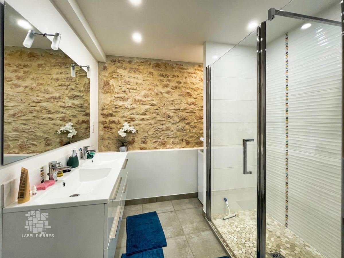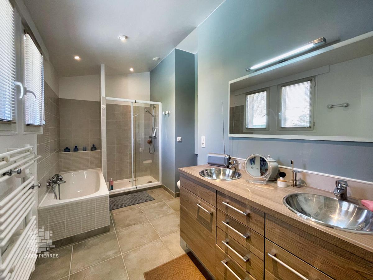• Salle d'eau avec douche , double vasque et chauffe serviette