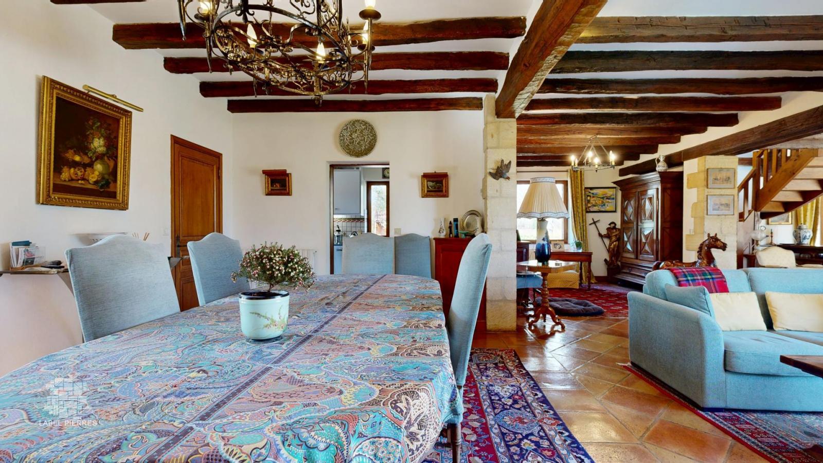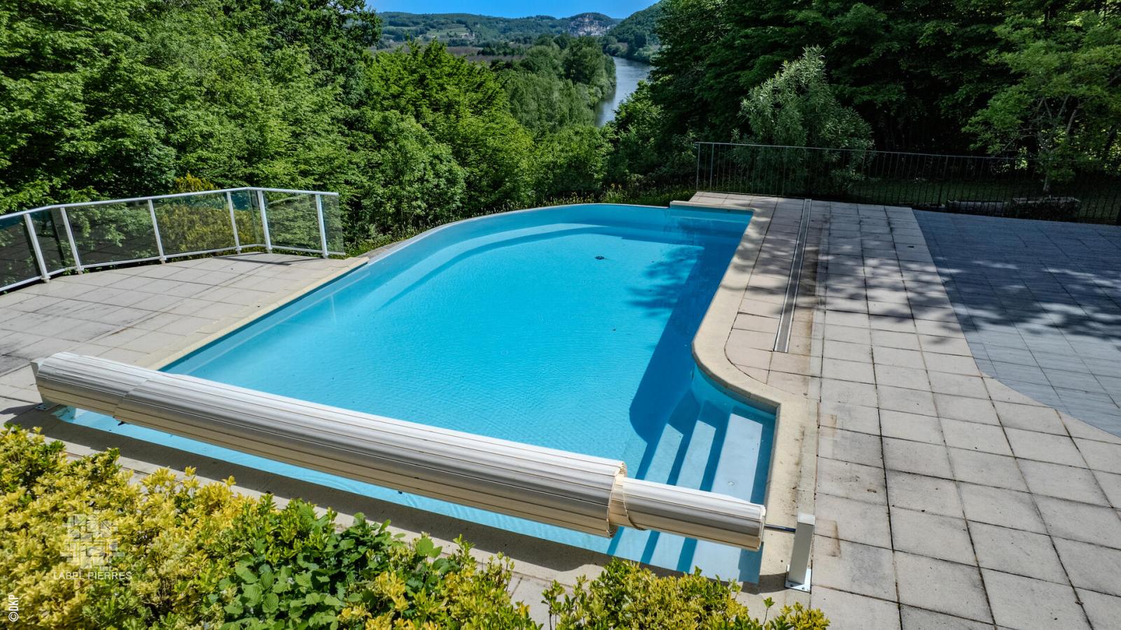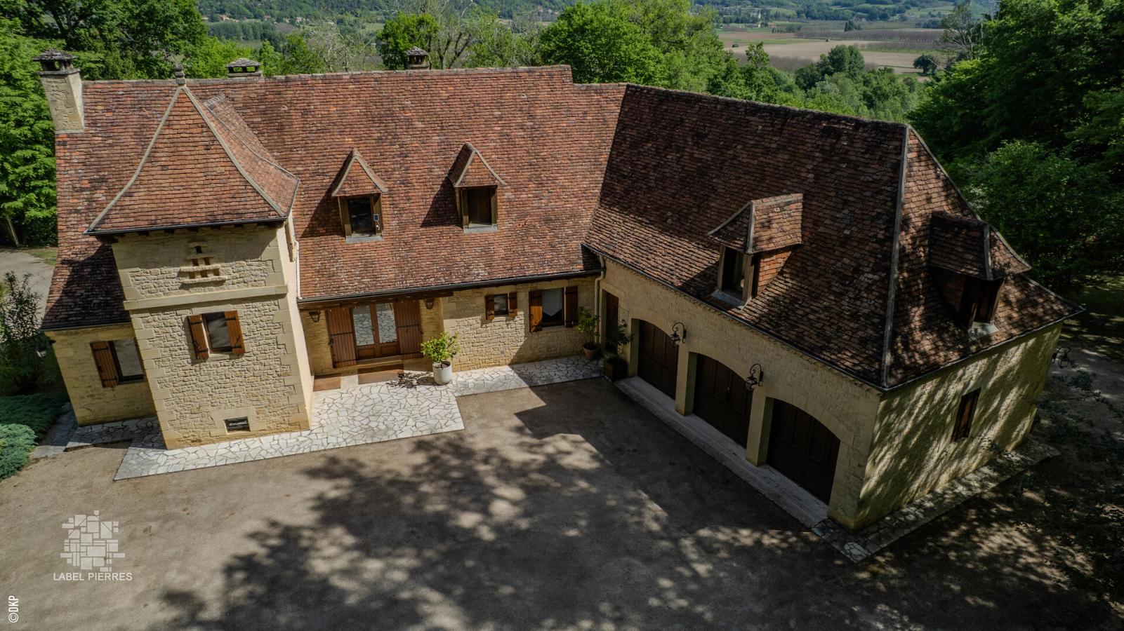 Dans un environnement calme et verdoyant, cette belle demeure périgourdine en pierre, construite en 1984, séduit par son charme authentique, ses volumes généreux et son confort. Elle offre une vue époustouflante sur la rivière et le château de Beynac, un panorama rare et enchanteur. La maison s’ouvre sur une entrée accueillante menant à une vaste pièce de vie avec cheminée en pierre et poutres apparentes. La cuisine, entièrement équipée, dispose d’un espace barbecue intégré, idéal pour les repas conviviaux. Le salon, baigné de lumière grâce à son plafond cathédrale, s’ouvre sur une grande terrasse extérieure, parfaite pour profiter de la vue. Une chambre avec parquet et accès direct au jardin, un bureau, une bibliothèque en mezzanine, plusieurs salles de bains et douches, un dressing et de nombreux rangements complètent le rez-de-chaussée. À l’étage, on trouve plusieurs chambres mansardées avec points d’eau et penderies, ainsi que des salles d’eau, WC et une salle de bain supplémentaire. En rez-de-jardin, de nombreux espaces utiles : buanderie avec adoucisseur, salon d’appoint, chaufferie, lingerie, salle de billard, atelier, caves et garde-manger. À l’extérieur, un terrain clos de plus d’1,5 hectare avec portail motorisé accueille une superbe piscine à débordement au sel, chauffée par pompe à chaleur. Un garage indépendant avec trois emplacements et portes motorisées vient compléter l’ensemble. Cette propriété combine le confort moderne au charme de l’ancien, dans un cadre naturel exceptionnel. Une opportunité rare à quelques minutes des plus beaux villages du Périgord noir. Les informations sur les risques auxquels ce bien est exposé sont disponibles sur le site Géorisques: www.georisques.gouv.fr