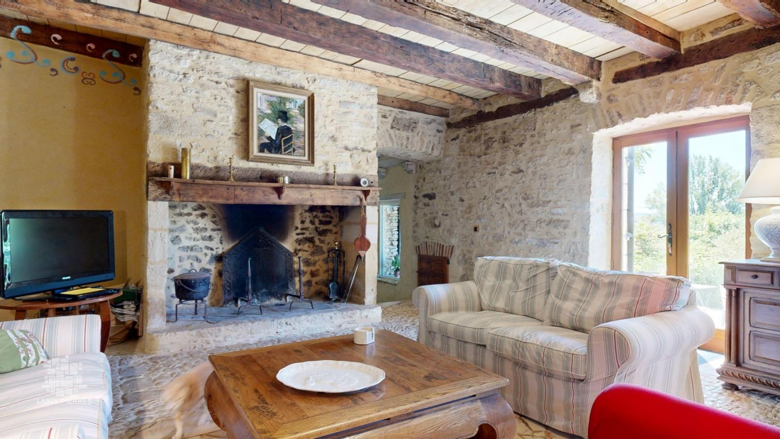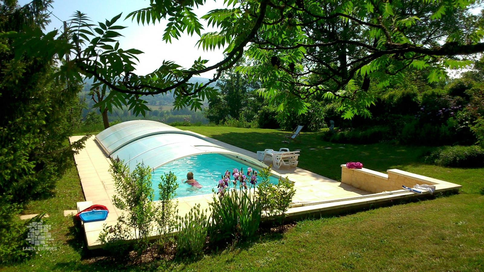 Élégante et vaste maison en pierres avec vue et piscine et ancien séchoir à tabac