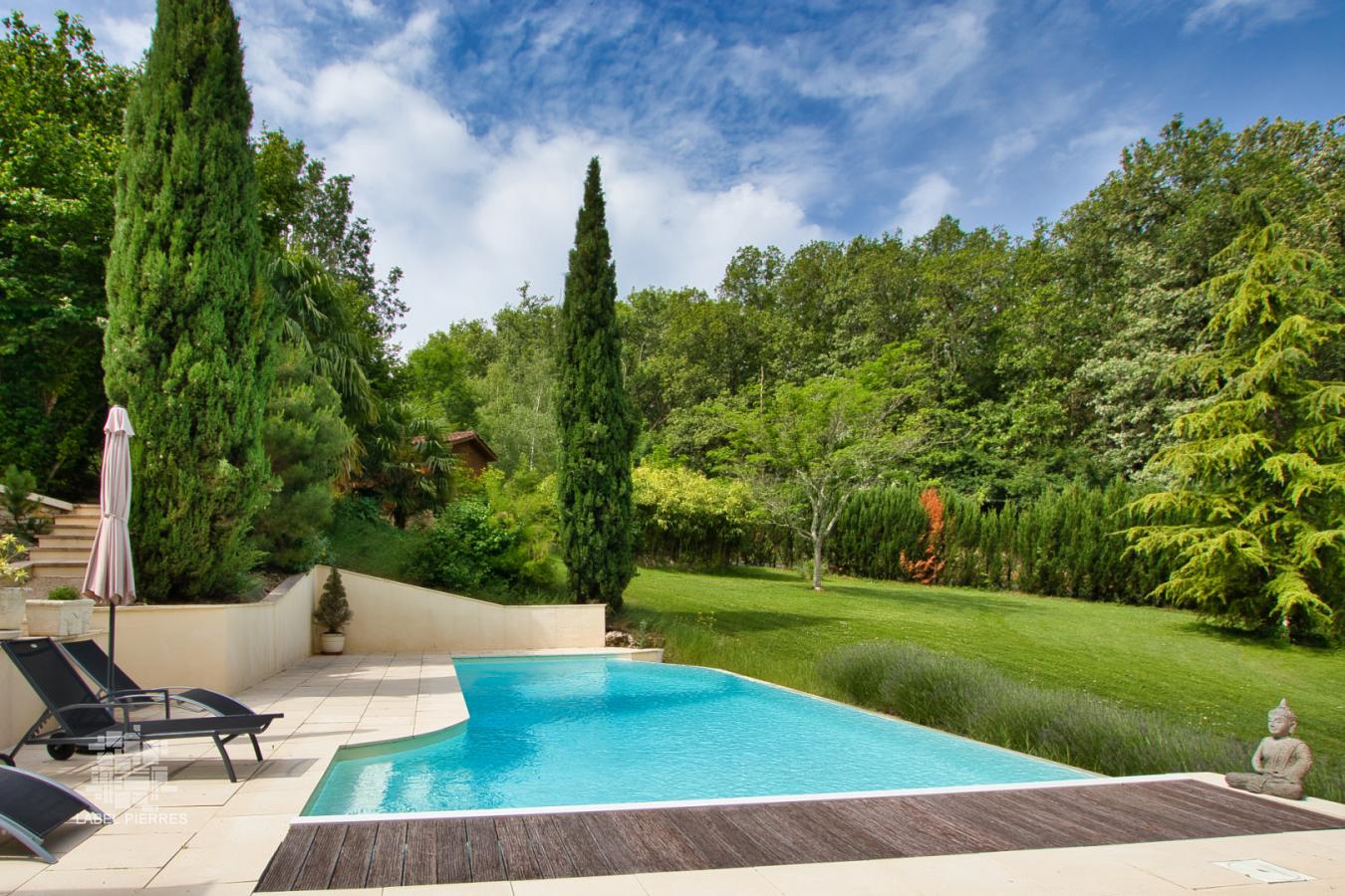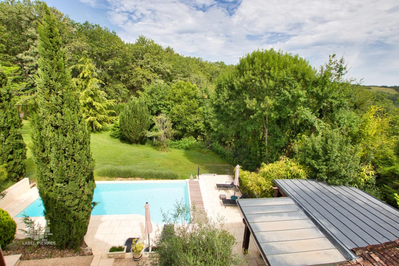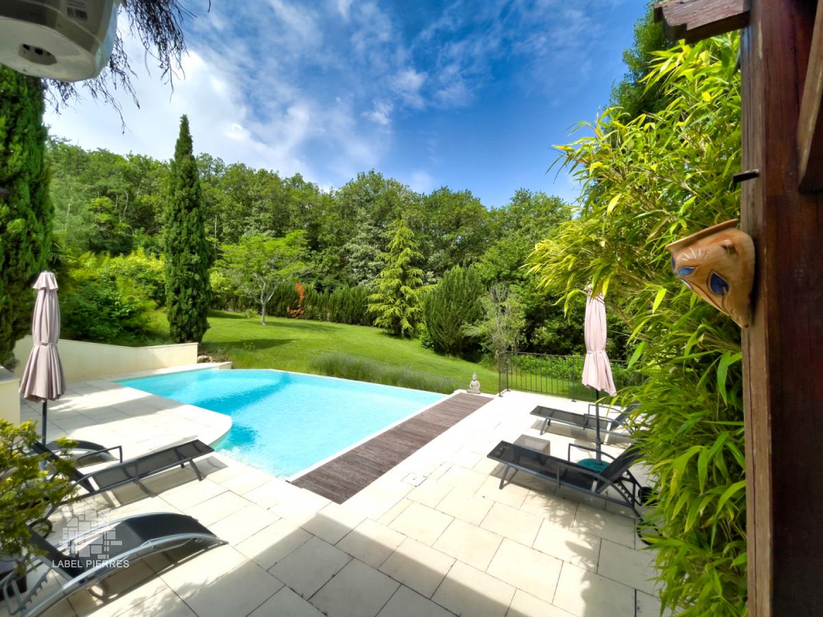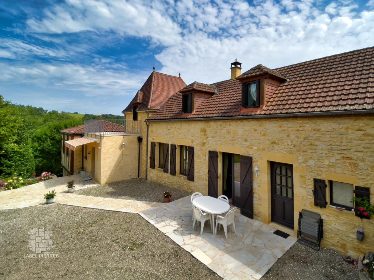 Au coeur de la vallée du céou, dans un environnement très agréable, ensemble de caractère comprenant une maison en pierre de 160 m2 avec 2 entrées, un séjour , une cuisine semi ouverte, un wc, un cellier, grande chambre climatisée avec dressing, salle d'eau avec wc, à l'étage 2 chambres dont une double donnant sur une terrasse avec vue sur la vallée, un bureau faisant office de chambre, salle d'eau, wc ainsi qu'un gîte de 45 m2 avec une chambre parentale avec salle d'eau et wc. Le terrain de 3231 m2 est agrémenté d'une piscine à débordement chauffée avec superbe pool house (cuisine d'été, salle d'eau avec wc, terrasse couverte) , d'un garage indépendant avec abri, d'un atelier d'un pigeonnier et d'un abri de jardin en bois Laissez vous séduire ... Double vitrage, climatatisation réversible, cheminée, fosse septique, chauffage électrique, Les informations sur les risques auxquels ce bien est exposé sont disponibles sur le site Géorisques: www.georisques.gouv.fr