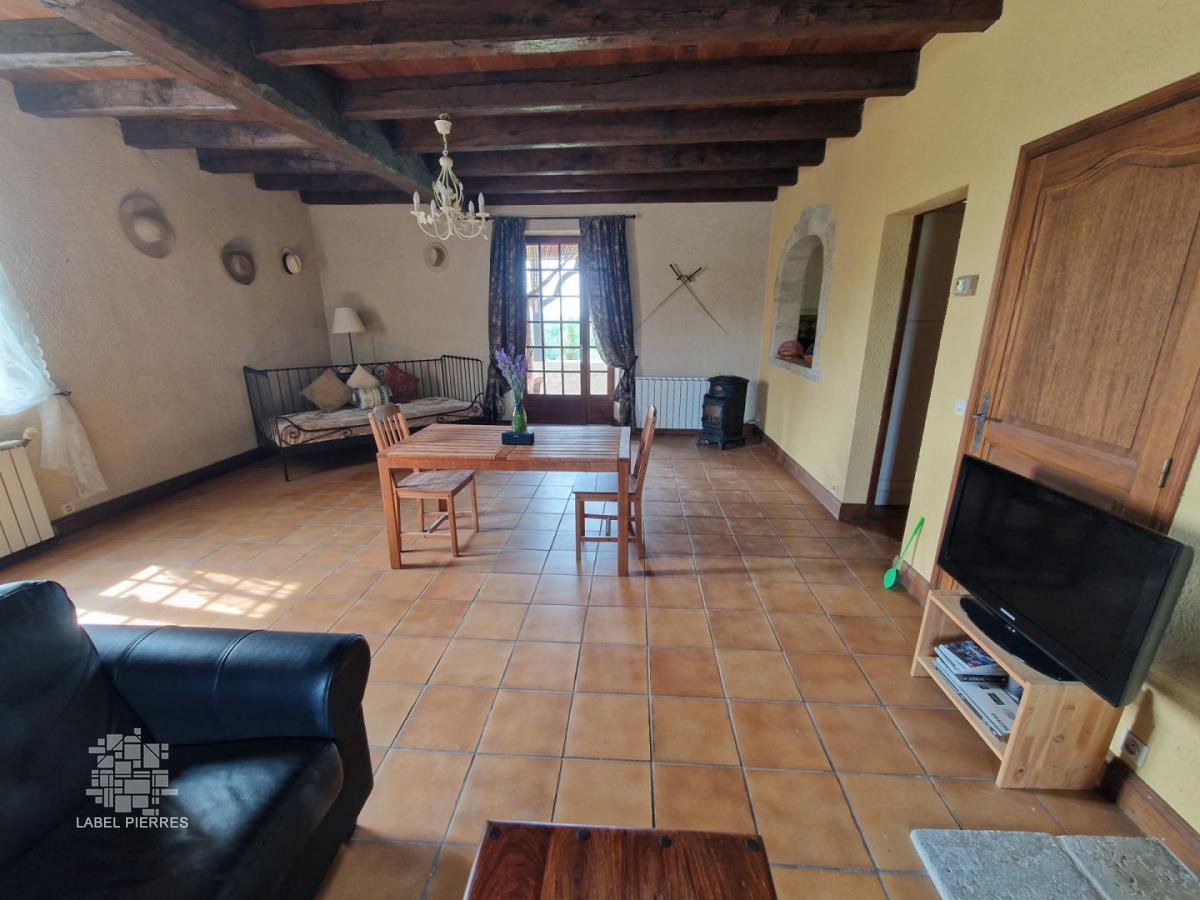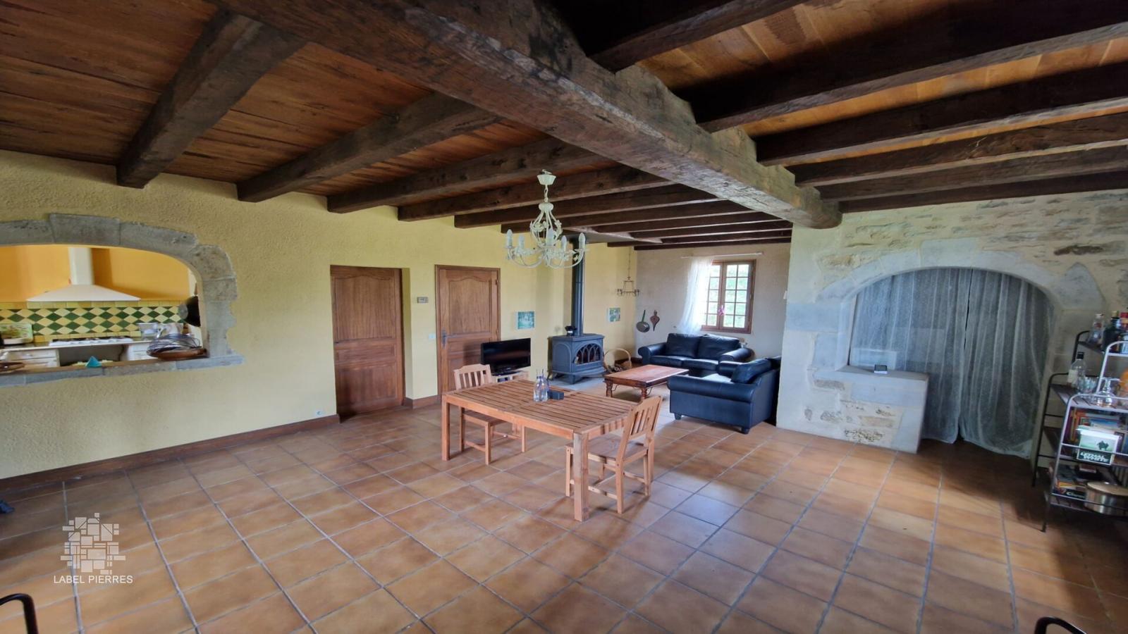 Belle situation au calme, dans une magnifique campagne, pour cette maison en pierre, bâtie sur un sous-sol complet d'environ 90 m² et offrant 130 m² habitables, extensibles à 155 m² après aménagement de deux chambres supplémentaires dans les combles. Etage : accessible par un escalier en pierre et belle terrasse en partie couverte, avec vue dominante. Entrée par couloir donnant sur une salle d'eau, deux chambres et une cuisine équipée semi-ouverte. Grande pièce de vie salon/séjour de 45 m² avec accès direct sur la terrasse couverte. Combles : En partie aménagés avec une grande chambre et salle de bain indépendante. Comme précisé plus haut, deux chambres supplémentaires peuvent être créees après travaux. Un grand hangar métallique de 255 m² entièrement fermé, vous offre un bel espace à exploiter selon vos projets. La maison est implantée sur un beau terrain de 4555 m² en prairie et bois sans voisinage en vis à vis. Les informations sur les risques auxquels ce bien est exposé sont disponibles sur le site Géorisques www.georisques.gouv.fr