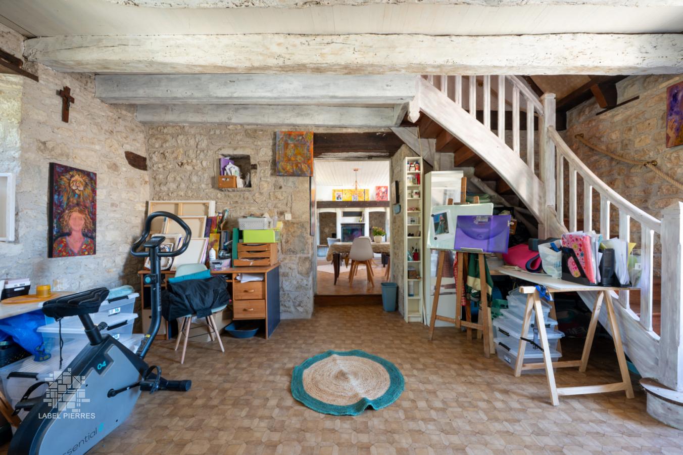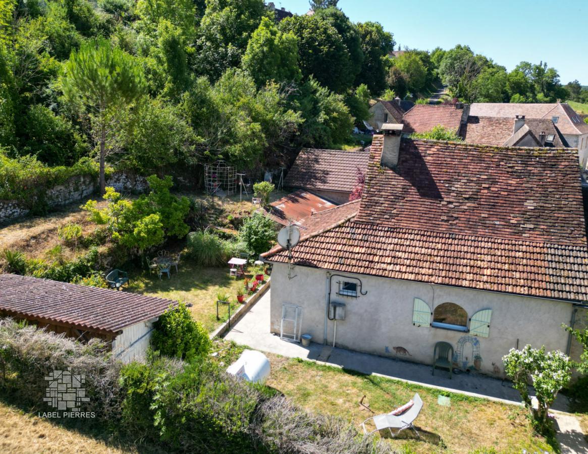 SECTEUR COEUR DE CAUSSE - Dotée d'un charmant espace jardin, cet agréable Enclos sis dans un beau village comprend une jolie Maison d'habitation en pierre de 91 m² avec partie de plain-pied et des dépendances telles garage, atelier, appentis. La Maison. RDJ. 2 caves de 34 et 31 m² avec buanderie et rangement. RDC. Entrée de 3 m², beau séjour avec cheminée de 31,7 m², suivie d'un espace bureau ou chambre de 18 m² et d'une deuxième chambre de 17 m², dégagement de 1,45 m², salle de bains de 3,7 m², wc de 1 m². Etage. Palier de 2,64 m², chambre de 10 m², grenier aménageable de 13 m². Chauffage au gaz et bois (insert). Double vitrage. Tout-à-l'égout. Raccordé à la fibre. Dépendances. Garage de 20 m², atelier de 17 m² et appentis de 40 m². Les informations sur les risques auxquels ce bien est exposé sont disponibles sur le site Géorisques www.georisques.gouv.fr