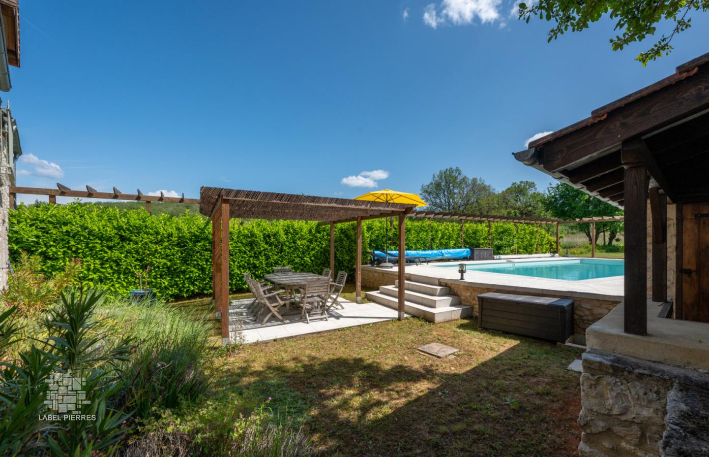 EXCLUSIVITE - Secteur Gourdon - Un bien coup de coeur ! Au calme avec vue ouverte sur une belle campagne, au sein d'un joli hameau sur 3172 m² paysagers avec piscine chauffée, vous serez séduits par cette ravissante et confortable Grange en pierre rénovée qui réunit le charme de l'ancien à une restauration alliant authenticité et modernité - 135 m² habitables dont spacieux séjour et 3 chambres lumineuses. Ancienne Grange aménagée sur 2 niveaux - RDC. Entrée sur spacieuse pièce de vie avec espace cuisine ouvert sur 74 m². RDJ. Dégagement de 10 m² avec accès extérieur, 3 chambres de 15,2 m² avec salle d'eau wc de 4,24 m², 12,39 m² avec salle d'eau wc de 5,16 m² et 11,76 m² avec salle d'eau wc de 4,95 m². Chauffage électrique au sol par plancher rayonnant et poêle bois. Fosse septique aux normes. Double vitrage.Raccordement à la fibre. Piscine au chlore chauffée avec plages. Local technique, espace cuisine d'été. Les informations sur les risques auxquels ce bien est exposé sont disponibles sur le site Géorisques www.georisques.gouv.fr