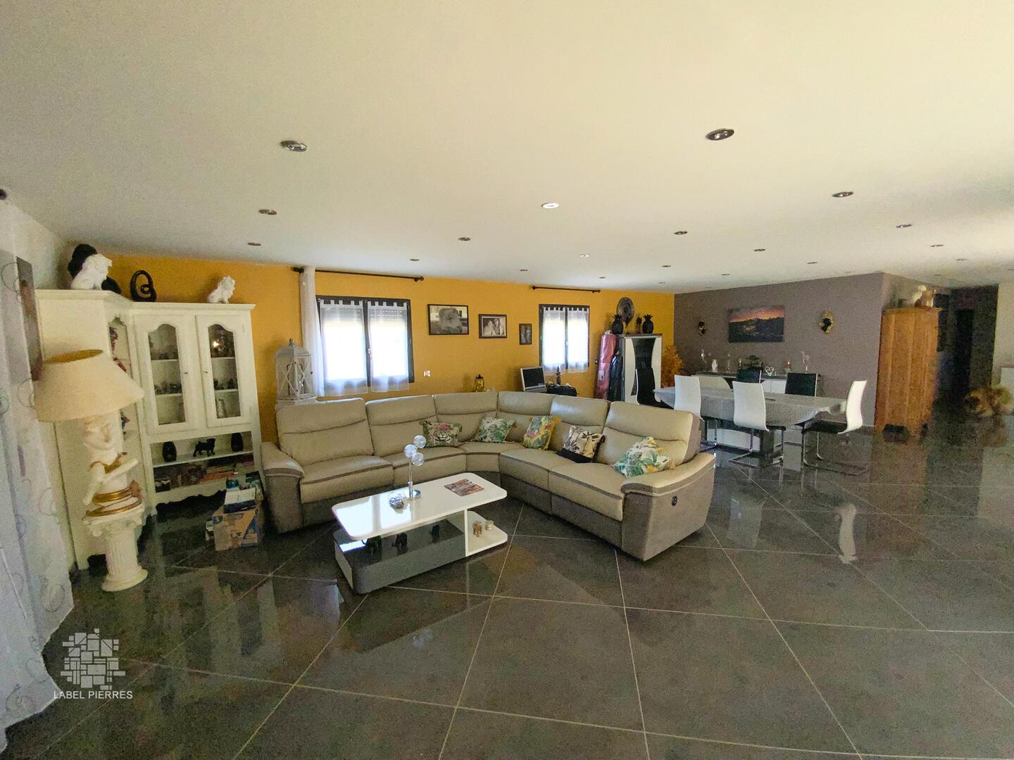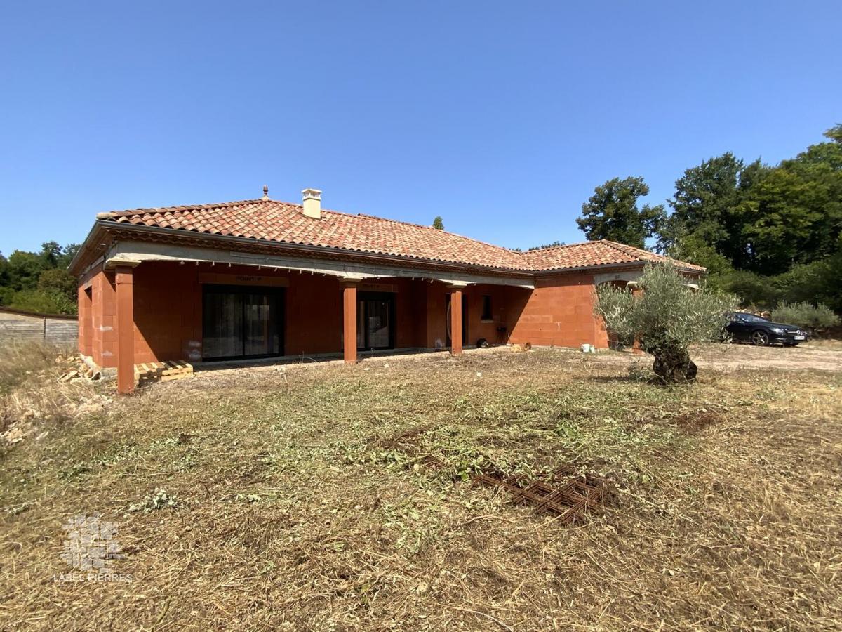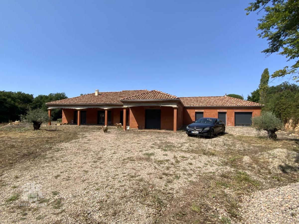 Cette vaste maison contemporaine pour laquelle quelques travaux de finition restent à prévoir (crépis, assainissement et avant-toits, aménagements extérieurs...) est neuve ! Elle offre près de 250 m² habitables organisés de plain-pied dont 4 chambres avec rangements, un très grand salon, une cuisine indépendante, aménagée et équipée, une salle de sport, une salle de bains (bain + douche + WC), une salle d'eau / WC, un dressing et une pièce à usage de chaufferie / buanderie. La maison est implantée sur un terrain en partie boisé de 1,4 Ha en situation calme et sans nuisance. Chauffage très peu énergivore par pompe à chaleur. "Semelle" piscine et dalle garage coulées, volets roulants électriques, belles prestations. Les informations sur les risques auxquels ce bien est exposé sont disponibles sur le site Géorisques: www.georisques.gouv.fr