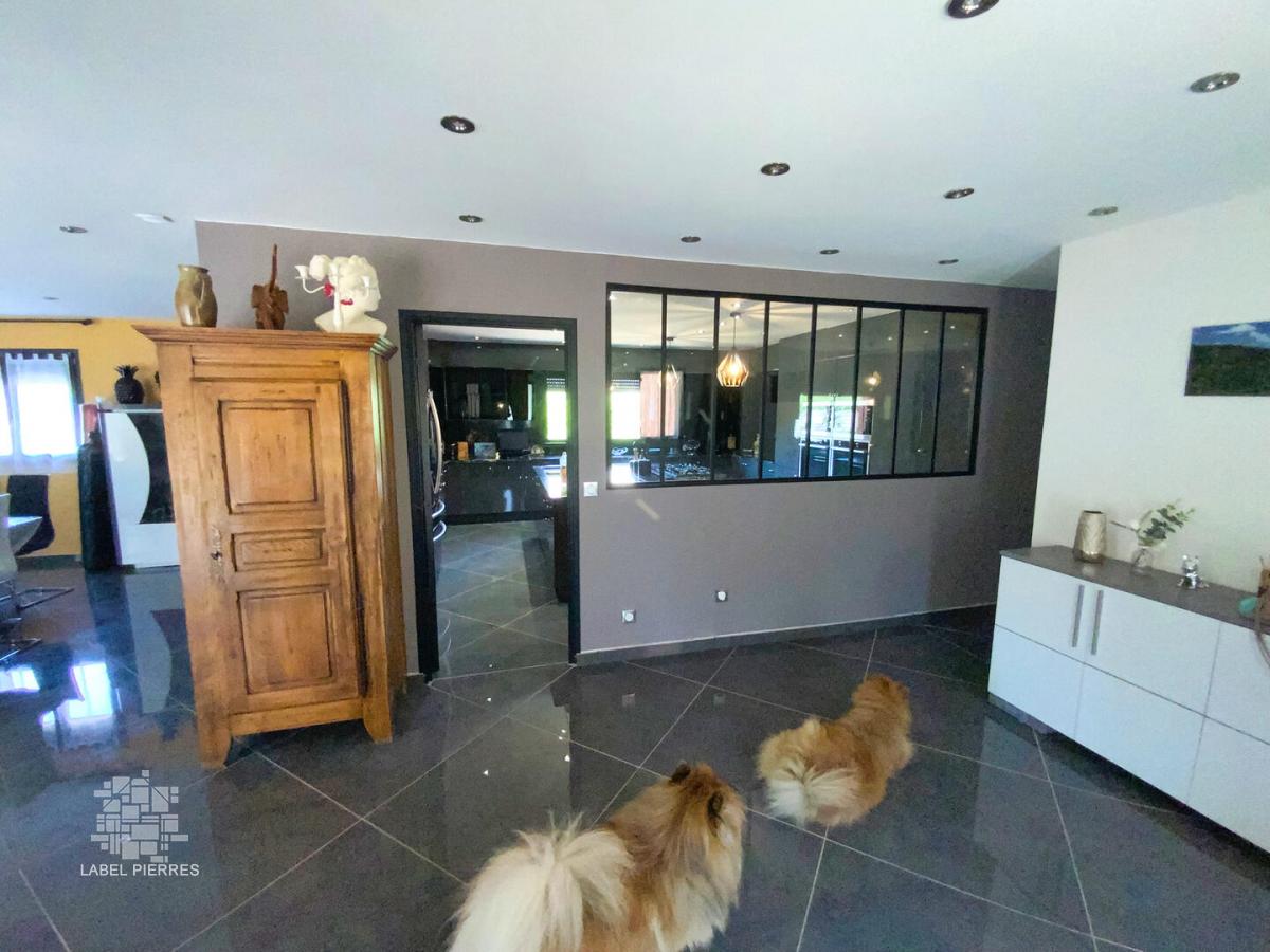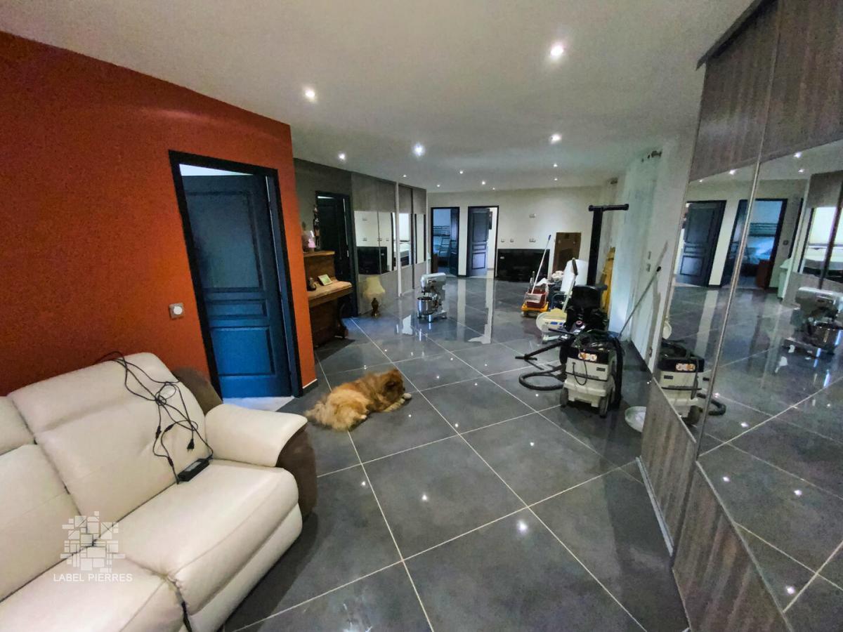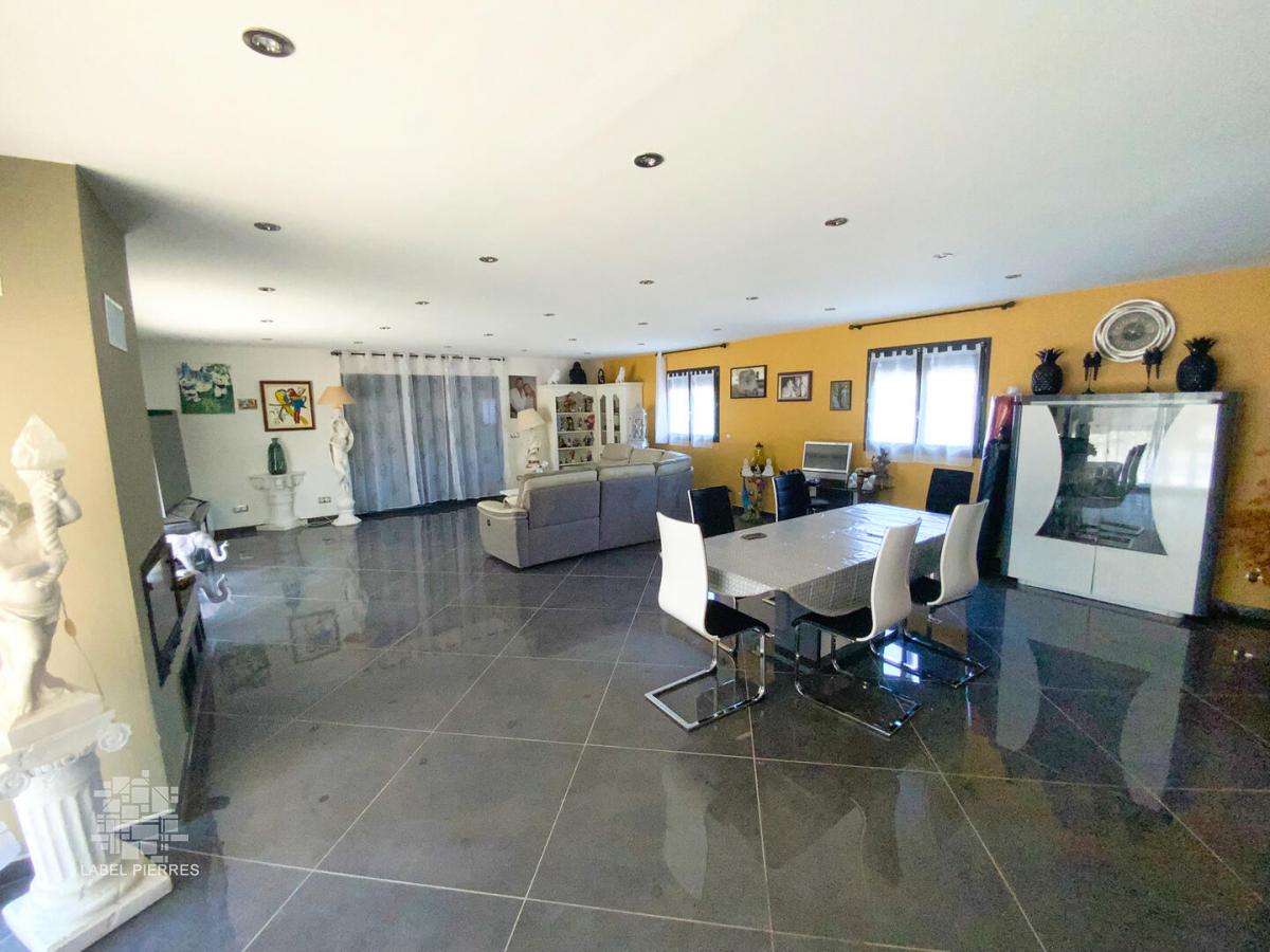 Cette vaste maison contemporaine pour laquelle quelques travaux de finition restent à prévoir (crépis, assainissement et avant-toits, aménagements extérieurs...) est neuve ! Elle offre près de 250 m² habitables organisés de plain-pied dont 4 chambres avec rangements, un très grand salon, une cuisine indépendante, aménagée et équipée, une salle de sport, une salle de bains (bain + douche + WC), une salle d'eau / WC, un dressing et une pièce à usage de chaufferie / buanderie. La maison est implantée sur un terrain en partie boisé de 1,4 Ha en situation calme et sans nuisance. Chauffage très peu énergivore par pompe à chaleur. "Semelle" piscine et dalle garage coulées, volets roulants électriques, belles prestations. Les informations sur les risques auxquels ce bien est exposé sont disponibles sur le site Géorisques: www.georisques.gouv.fr