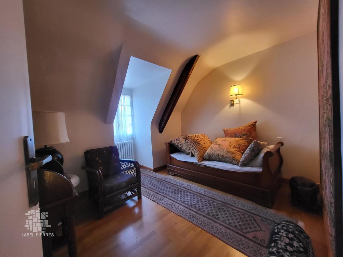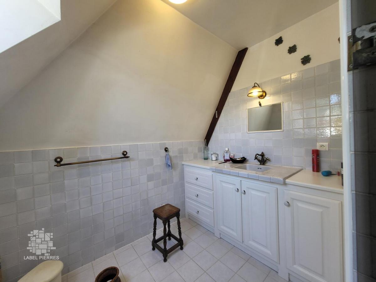 - Gîte / maison d'amis. Au RDC : chambre en suite de 25m² avec salle de bains (baignoire, lavabo, WC), chaufferie et buanderie (7,5m²). Au 1er étage : grande pièce palière (16m² + 22m²), une chambre de 12m² et salle
