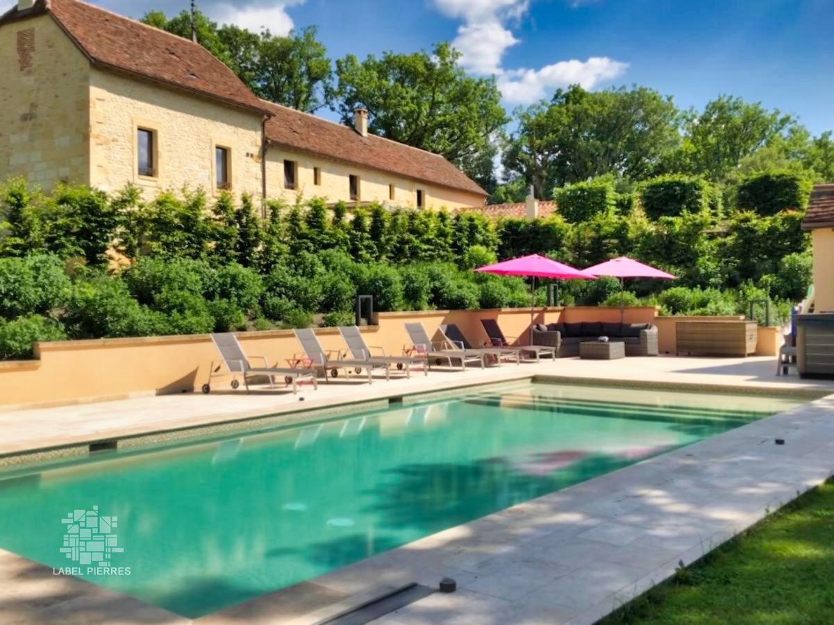 EN PÉRIGORD NOIR - sans aucune nuisance et non isolée , à 30 minutes de SARLAT et 4 kilomètres de LASCAUX , en position dominante, au coeur d'un domaine de 14 hectares de bois, prairies et truffière en production, ce splendide domaine vous ouvre ses portes. Le manoir d'une superficie d'environ 238 m2 a été parfaitement restauré. Dès votre arrivée, vous serez charmé par l'authenticité préservée de cette demeure associée à un confort résolument moderne. Les hauteurs sous plafond, la tomette d'époque , les cheminées en pierre témoignent de l'élégance intemporelle de cette demeure. Celle-ci se compose tel que suit ; une entrée vous invite à pénétrer dans un salon sur tomette ancienne avec cheminée en pierre, la cuisine équipée haut de gamme est ouverte sur l'extérieur. Le rez de jardin accueille une spacieuse et lumineuse pièce de réception de 55 m2 sublimée par une cheminée en pierre et ouverte sur un parc d'exception, offrant une continuité élégante entre intérieur et extérieur. Au bout de quelques marches, découvrez un bureau, deux chambres avec salle d'eau et WC, ainsi qu'une magnifique suite parentale , Au 1er étage deux chambres une salle d'eau, wc séparés Bien cachée, une bibliothèque ou votre futur bureau (qui sait ?) une partie des combles reste aménageable Concernant la partie locative : aménagés dans les anciennes dépendances du manoir, vous serez séduits par les 3 Gîtes en parfait état, restaurés dans les règles de l'art et dont l’aménagement a été particulièrement soigné. toutes les chambres climatisées bénéficient d’une salle de bains attenante. Ils sont tous dotés d’ une terrasse privative. le premier Gîte " La Boétie" de 62 m2 habitables se compose d'une pièce principale avec cuisine ouverte et poêle à bois, un Wc au 1er étage une chambre sur parquet massif et salle d'eau et Wc , le Second Gîte " Montaigne" de 135 m2 habitables vous propose une belle pièce de vie avec cuisine équipée , un WC , une chambre en suite, au 1er étage un salon distribue 2 chambres en suite avec salle d'eau et WC le Troisième Gîte " Brantome" de 104 m2 habitables vous offre une pièce principale de 55m2 avec cuisine équipée , 2 chambres en suite avec salle d'eau et WC A l'extérieur : 2 dépendances en pierre à rénover pour agrandir , pourquoi pas, votre capacité locative , ou toute autre activité , salle de sport ... une piscine de 11x 5 chauffée - traitée au sel et couverte avec abri télescopique , un jacuzzi, une grange aménagée en pièce d'accueil et garage, un atelier, une buanderie. Vous l'aurez compris, ce bien unique n' attend plus que vous pour continuer son histoire débutée aux alentours du 7 ème siècle. Résolument haut de gamme, il émane de cette propriété une sérénité rare à découvrir Découvrez cette propriété d'exception comme si vous y étiez grâce à notre vidéo drone immersive : https://youtu.be/BQIPPjJp9Co Les informations sur les risques auxquels ce bien est exposé sont disponibles sur le site Géorisques www.georisques.gouv.frLes informations sur les risques auxquels ce bien est exposé sont disponibles sur le site Géorisques: www.georisques.gouv.fr