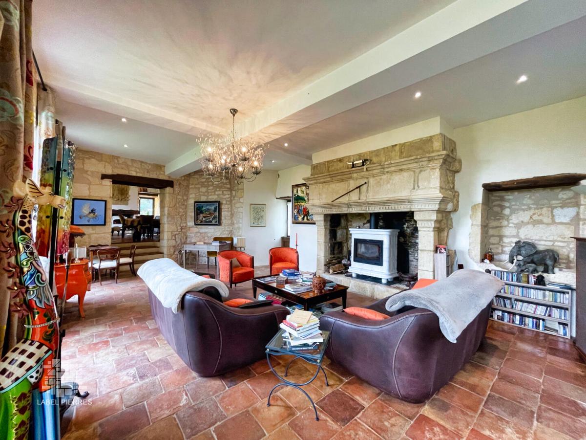 - Pièce à vivre de 55 m2 ouverte sur le parc avec cheminée en pierre et poêle à bois - hauteur sous plafond 3,44m2