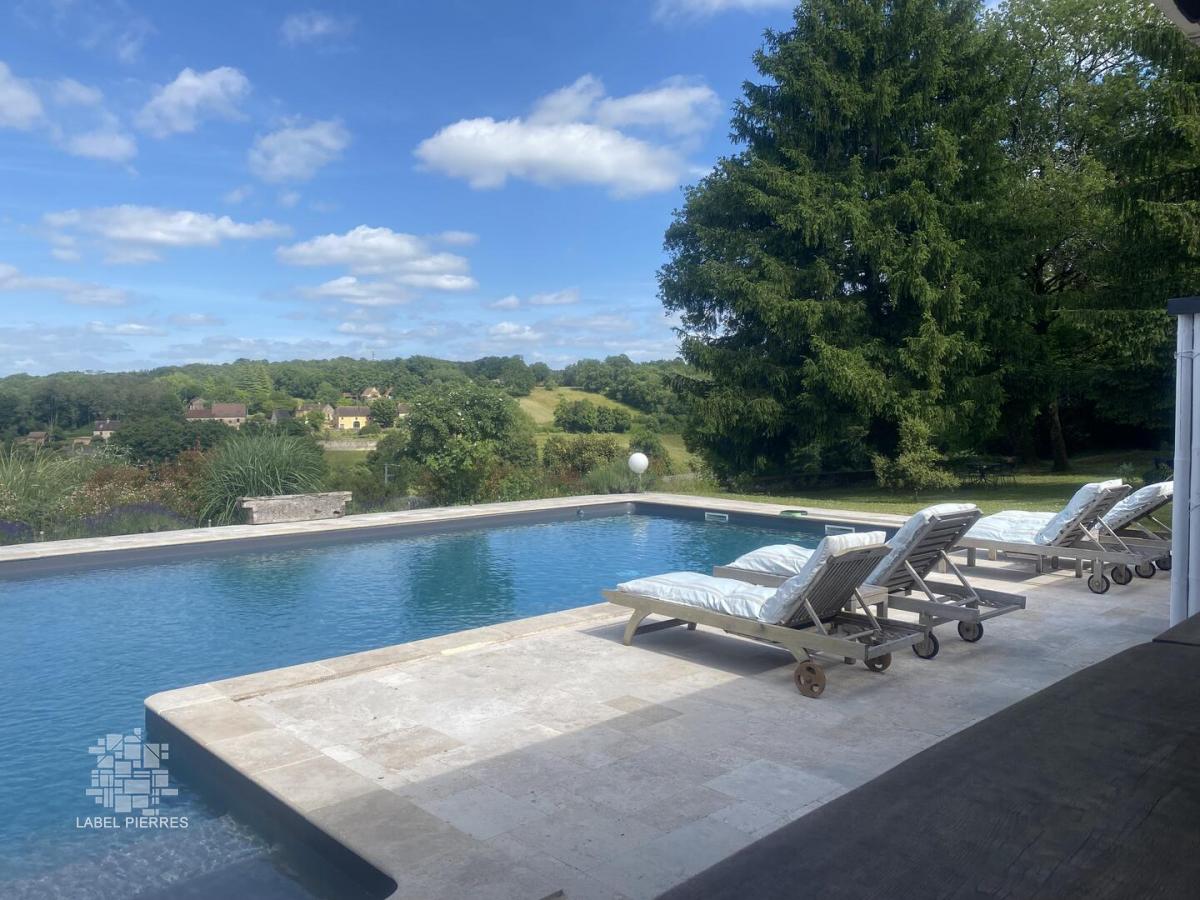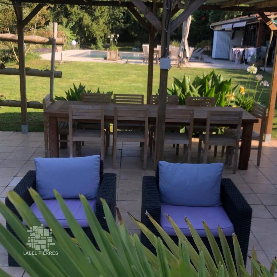 - Piscine 5 ans 13 x 6 (2,25 m de profondeur)Terrasse travertin. Chlore - Liner neuf.