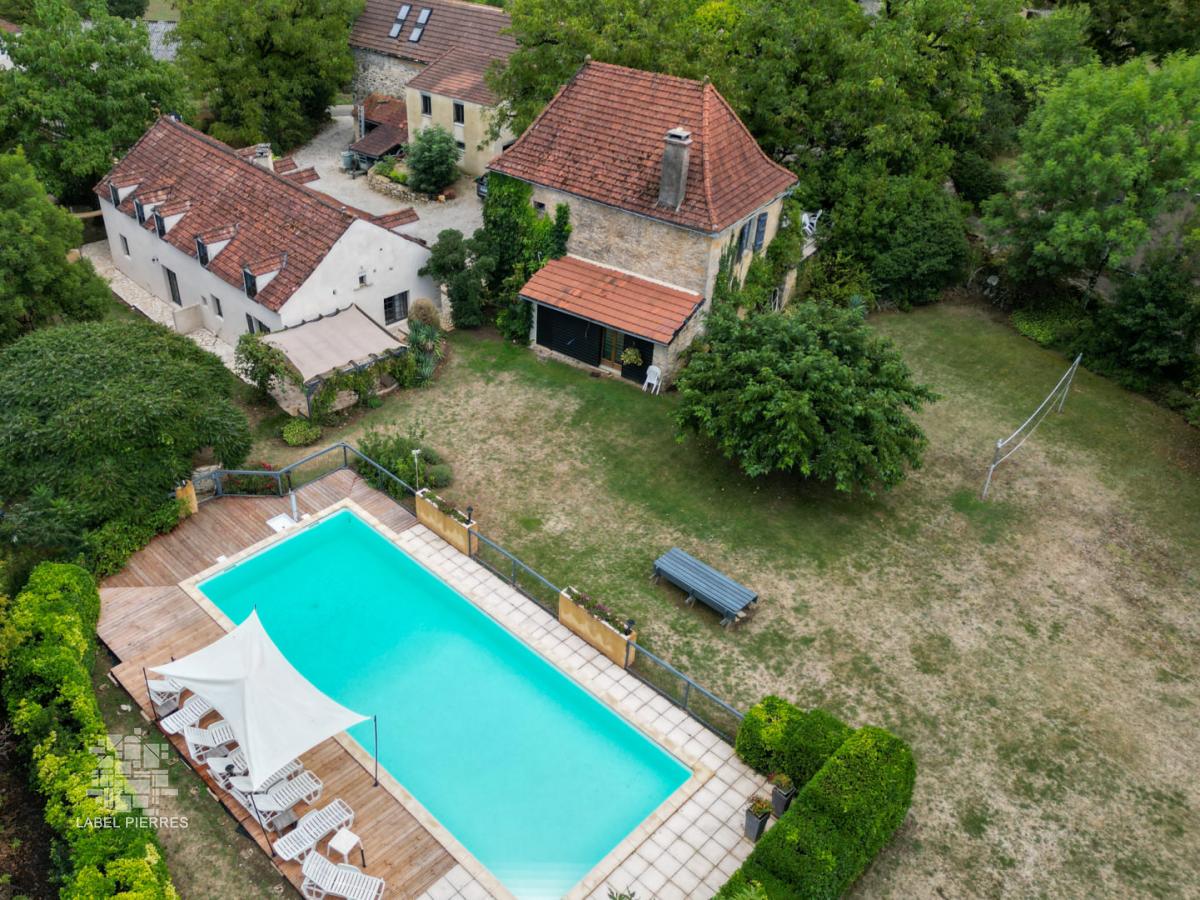 Secteur Catus - Dans une belle campagne, au sein d'un hameau tranquille sur 9070 m² arborés avec bel espace piscine, cet ancien Corps de ferme comprend une maison d'habitation principale accompagnée de de deux gites - en potentiel complémentaire, une annexe qui attend l'aboutissement de sa restauration. Espaces atelier, caves, rangements. La Maison. RDC. Entrée sur séjour de 46 m² avec arche en pierre incluant espace cuisine, celleir buanderie de 8,9 m² - petit espace douche wc à terminer. Etage. Salon avec cheminée (poêle Godin) de 22 m² avec entrée par terrasse, dégagement de 18 m² avec placards, chambre de 18 m² avec placards, salle d'eau wc de 3 m². Etage 2. Grenier aménageable - environ 30 m². Chauffage au bois. Survitrage et simple vitrage. Ancienne grange en pierre aménagée en 2 gites chacun avec terrasse : Gite 1 - 82 m² comprenant RDC. Séjour cuisine, salon avec insert, salle d'eau wc avec placards rangement. Etage. Palier, 3 chambres, salle de bains wc. Gite 2. 105 m² comprenant RDC. Entrée avec placards, wc avec lave-mains, séjour avec cuisine, salon avec insert. Etage. Palier, 4 chambres, salle de bains avec wc, salle d'eau. Chauffage bois (insert). Simple vitrage. - 2 fosses septiques sur l'ensemble de la propriété : une regroupant la maison principale et les 2 gites, une pour l'annexe Annexe comprenant en rdc : partie atelier de 25 m² + 2 caves de 18 et 26 m². Autre partie avec wc lave-mains de 2,48 m², pièce de 24 m². Etage. Pièce aménagée en salle d'activités avec cheminée (poêle) de 35 m², salon de 19,5 m², 2 pièces à aménager de 28 et 29 m² - évier en pierre et belle cheminée cantou. Bel espace piscine de 15 x 6 au chlore avec plages - sécurisée. Citerne de récupération des eaux pluviales. Potager. Les informations sur les risques auxquels ce bien est exposé sont disponibles sur le site Géorisques : www.georisques.gouv.fr