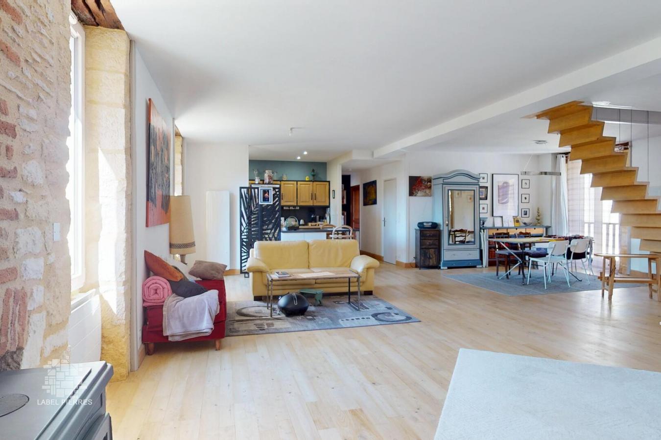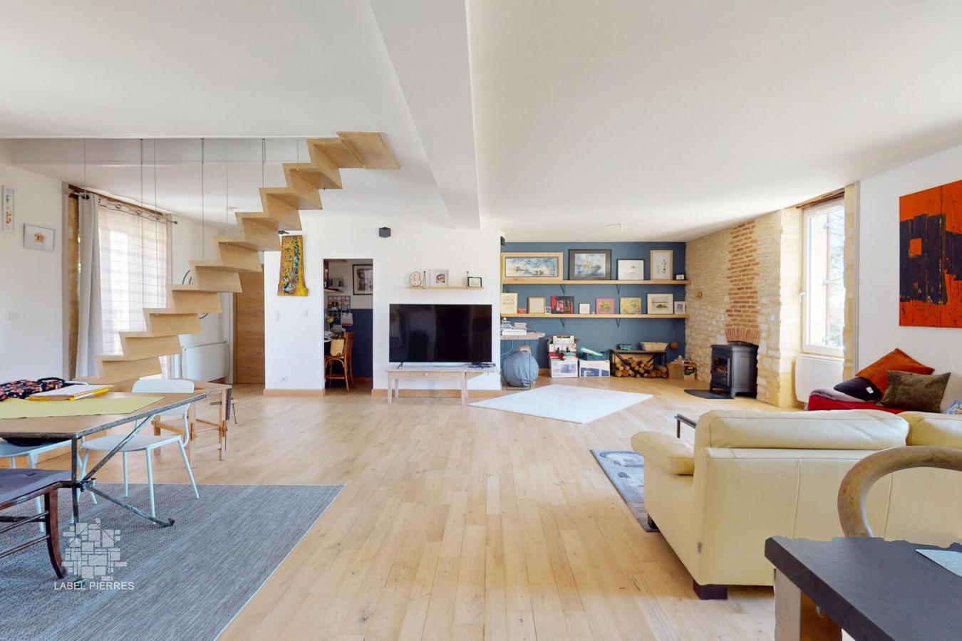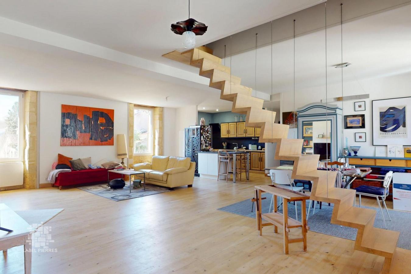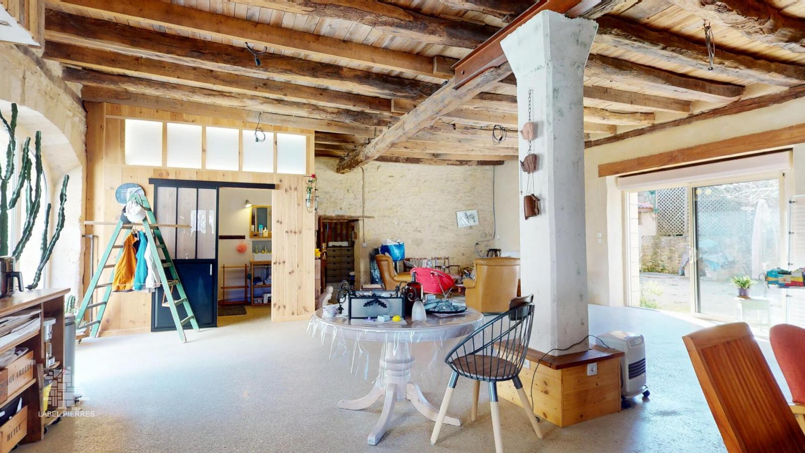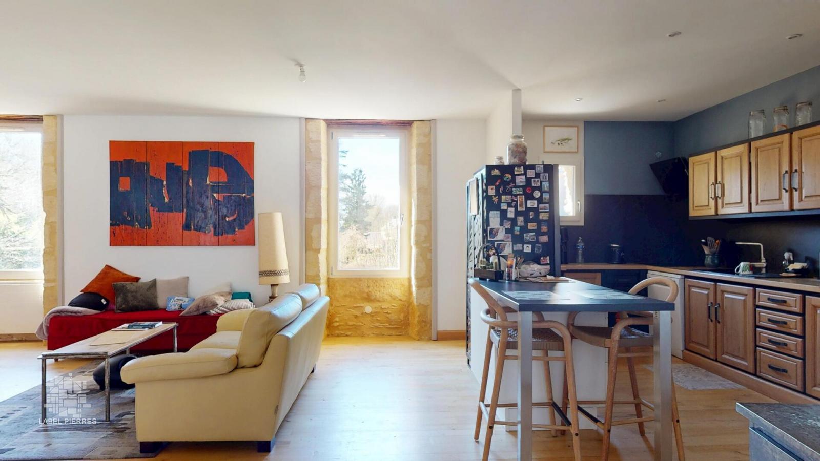 En plein centre-ville de Montignac-Lascaux, dans une impasse calme avec place de stationnement et cour privatives, voilà une des bâtisses les plus anciennes du village, écurie d’ autrefois, rénovée en une maison-atelier de charme offrant des volumes spectaculaires. L’atelier avec plan de cuisine en Rdc mesure 95 m2 et donne sur la cour fermée avec remise, entrée de 32 m2 et salle d’eau/wc de 6 m2. À l’étage, une magnifique pièce transpercée de lumière de 75 m2 avec cuisine ouverte, deux chambres dont la principale avec salle de bains. L’accès au dernier niveau se fait par un superbe escalier suspendu, œuvre d’artisan originale, desservant deux chambres supplémentaires et une grande pièce mansardée et isolée de plus de 65 m2 au sol. Volume, calme et lumières sont les maîtres-mots Les informations sur les risques auxquels ce bien est exposé sont disponibles sur le site Géorisques: www.georisques.gouv.fr