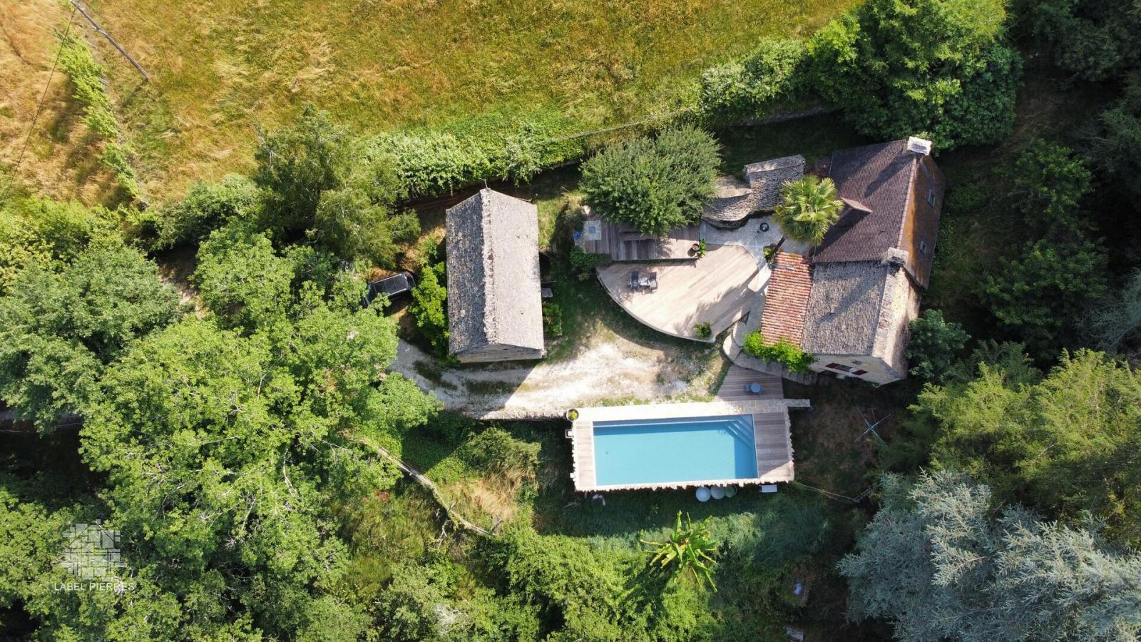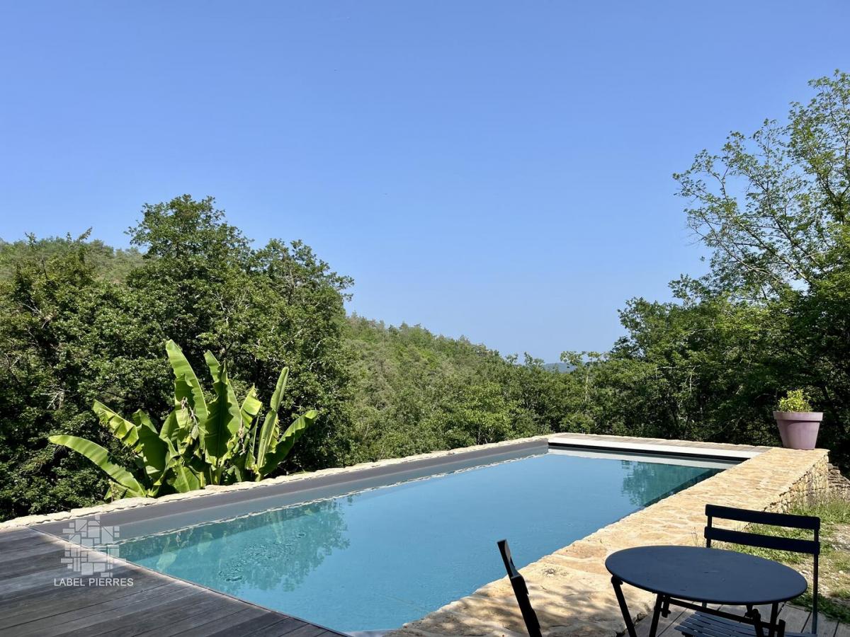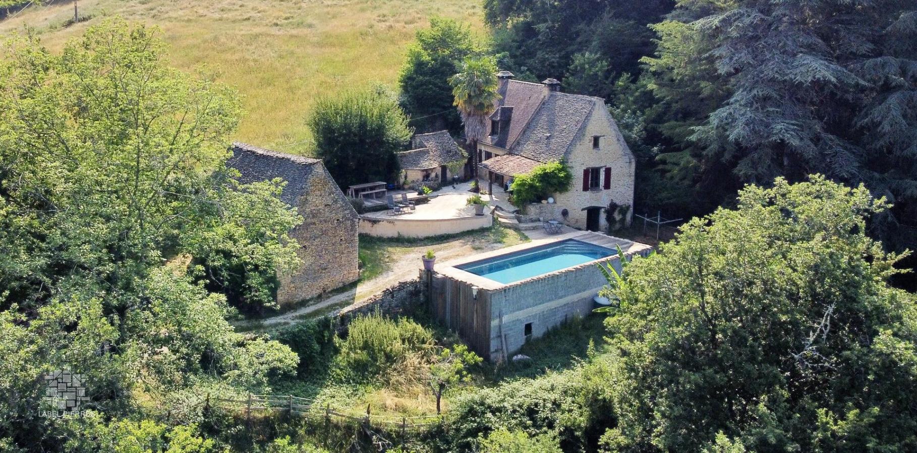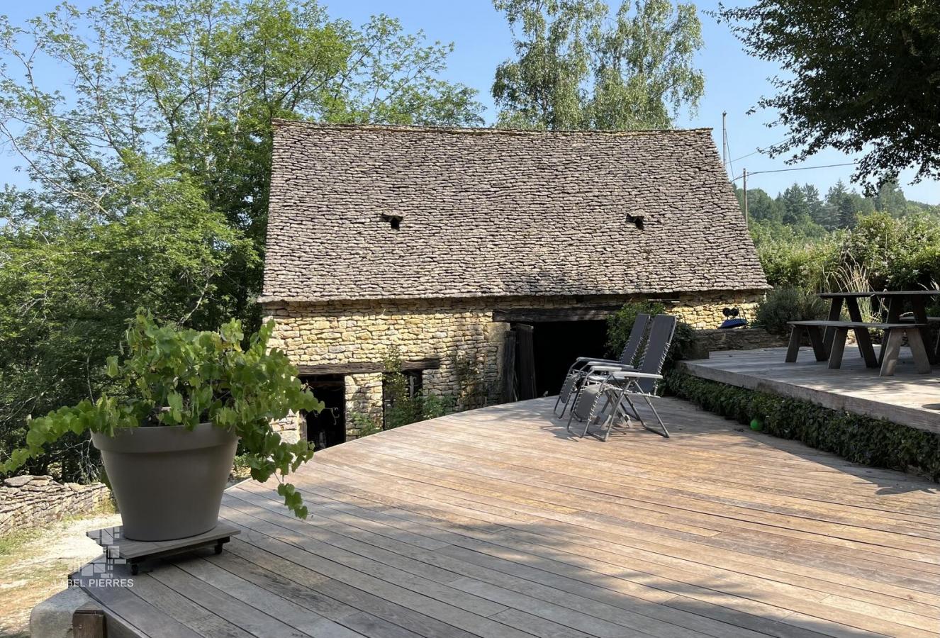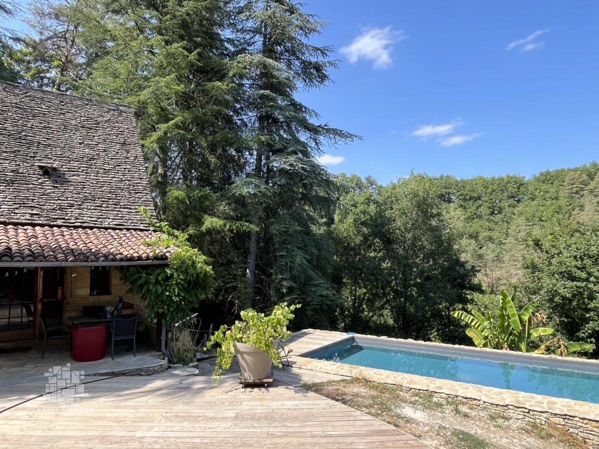 En Périgord Noir, située à 4 km d'un village avec tous les commerces, perchée sur la colline, dans une vallée protégée, cette propriété de caractère authentique avec piscine est implantée à flanc de coteau sur un terrain d'environ 4500 m². Elle se compose de la maison d'habitation d'environ 85 m² habitables au sol comprenant une belle pièce de vie au rdc avec cuisine équipée et salon avec cheminée typique et sol en pisé. A l'étage: deux petites chambres mansardées ainsi qu'une salle d'eau. Une grande terrasse en bois exotique relie la maison à une belle grange de 35 m² environ couverte de lauzes, surplombe la piscine chauffée et permet de profiter de la vue entre la cime des arbres. Situation rare. Les informations sur les risques auxquels ce bien est exposé sont disponibles sur le site Géorisques: www.georisques.gouv.fr