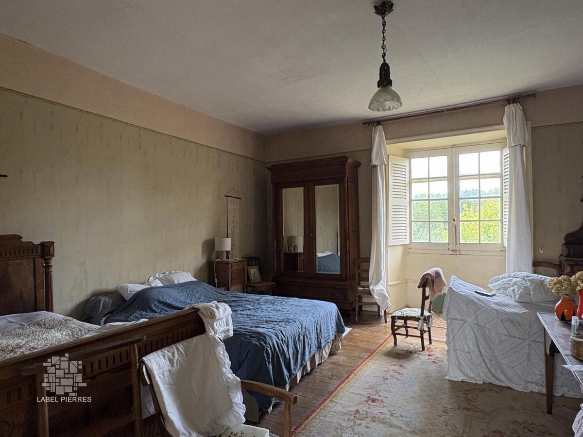 - 4 Chambres 1 de 25 m² + cabinet de douche, 1 de 27m², 1 de 31 m², et 1 de 50 m² avec grande cheminée en pierre pouvant être un salon.