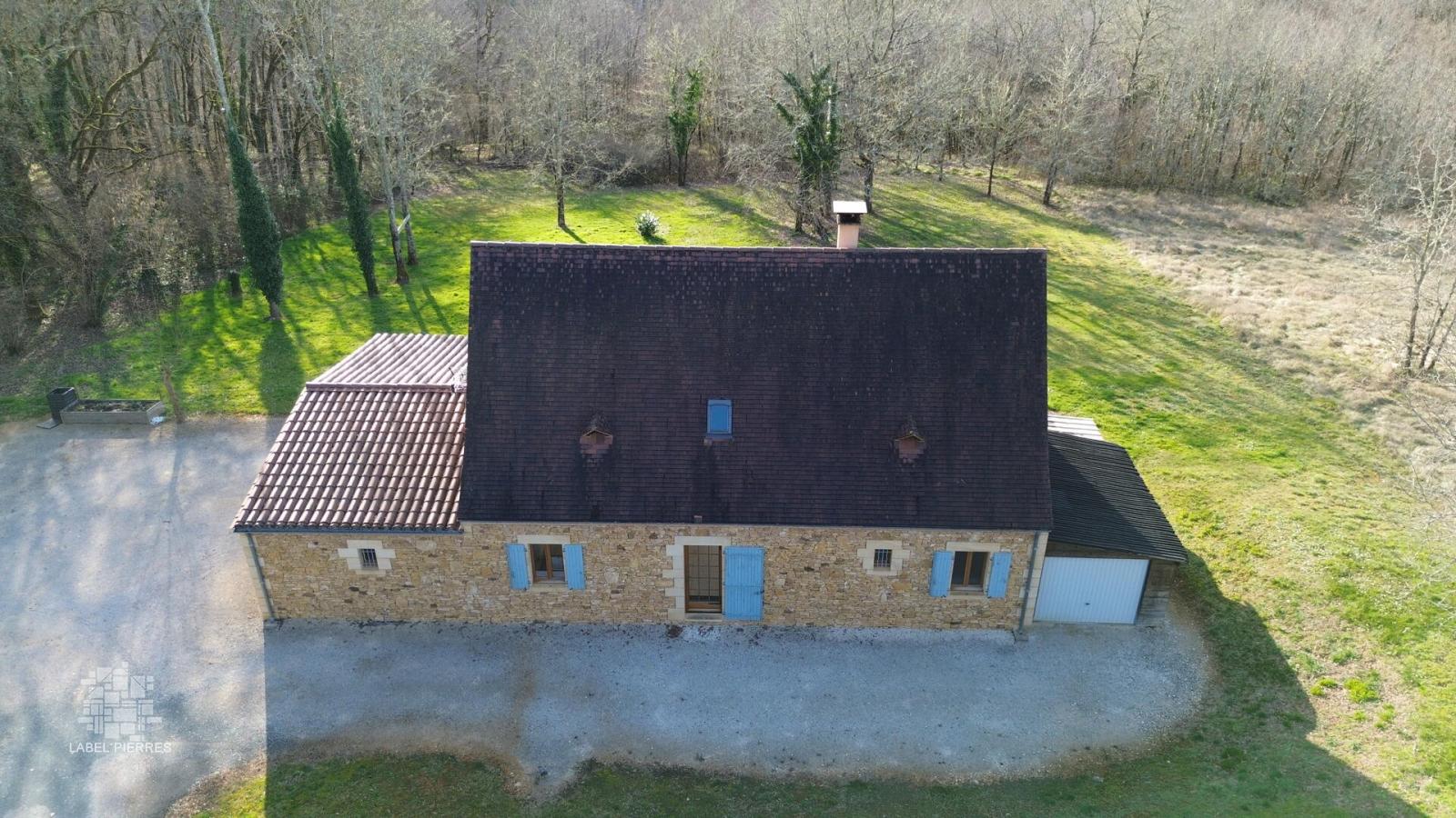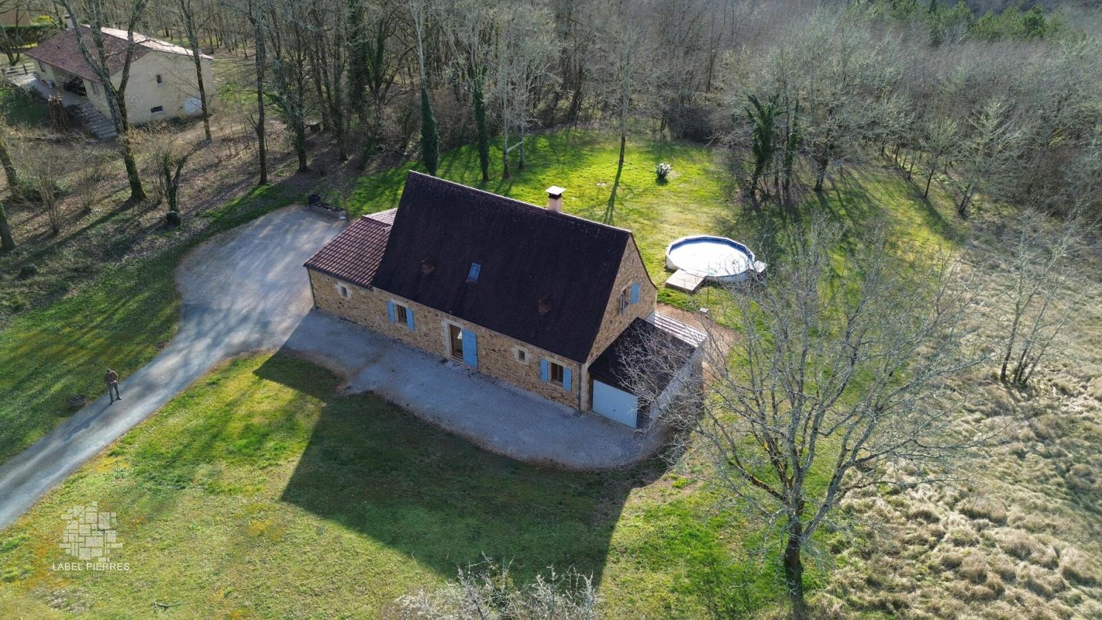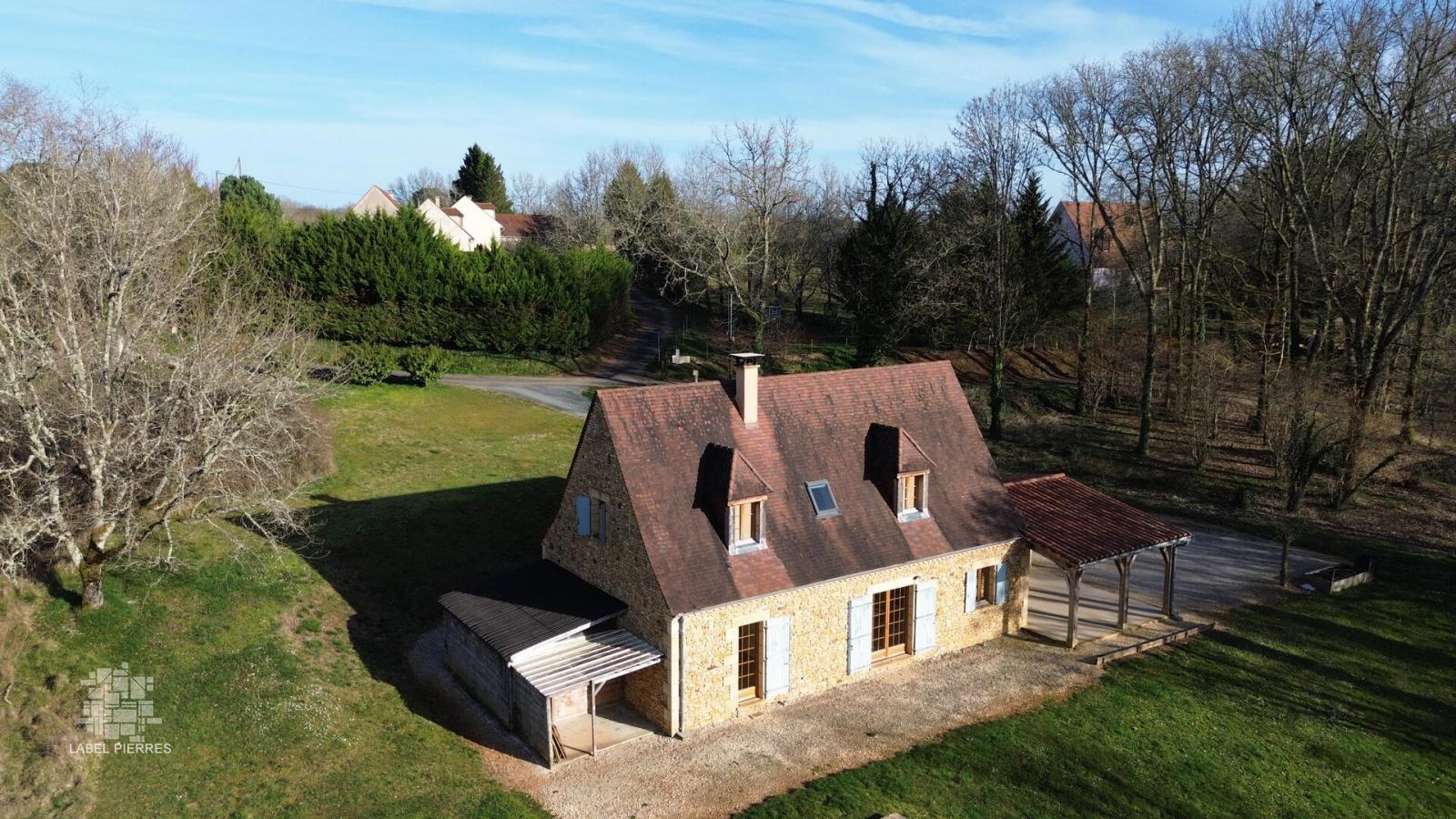 A environ 9 km du Bugue, à la campagne mais non isolée, Maison perigordine en pierres de 2009, aménagée sur 2 niveaux d'env 130m2. Au rez de chaussée : Pièce à vivre d'env 57m2 avec partie cuisine aménagée, poêle à bois côté salon, bien éclairée avec sortie sur terrasse couverte. Cellier, wc, salle d'eau et chambre de plain pied. A l'étage : Palier, 3 chambres dont une plus petite et salle de bains. En appentis : Remise. piscine hors sol. Beau terrain de 5183m2 en prairie et bosquet. Les informations sur les risques auxquels ce bien est exposé sont disponibles sur le site Géorisques: www.georisques.gouv.fr