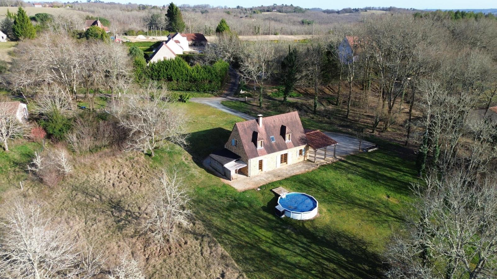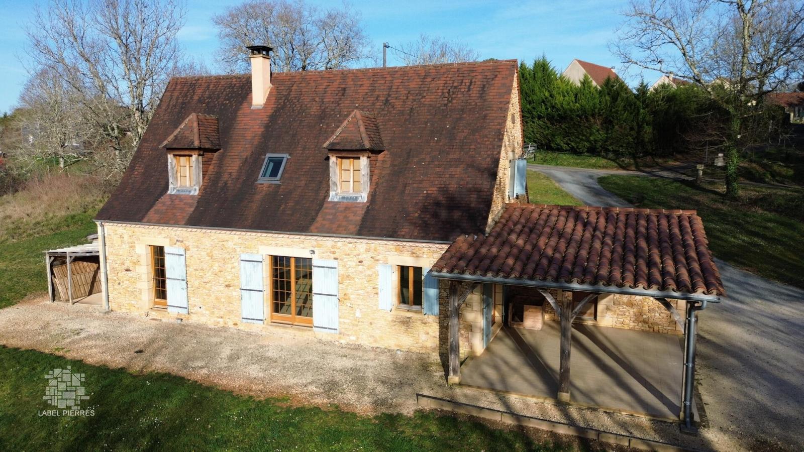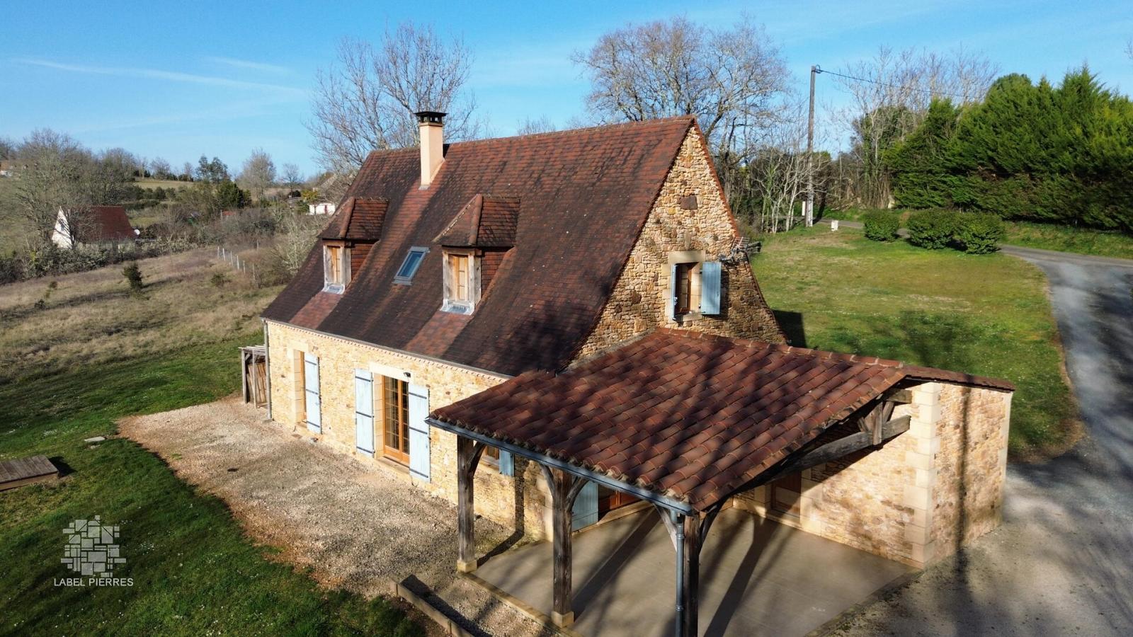 A environ 9 km du Bugue, à la campagne mais non isolée, Maison perigordine en pierres de 2009, aménagée sur 2 niveaux d'env 130m2. Au rez de chaussée : Pièce à vivre d'env 57m2 avec partie cuisine aménagée, poêle à bois côté salon, bien éclairée avec sortie sur terrasse couverte. Cellier, wc, salle d'eau et chambre de plain pied. A l'étage : Palier, 3 chambres dont une plus petite et salle de bains. En appentis : Remise. piscine hors sol. Beau terrain de 5183m2 en prairie et bosquet. Les informations sur les risques auxquels ce bien est exposé sont disponibles sur le site Géorisques: www.georisques.gouv.fr