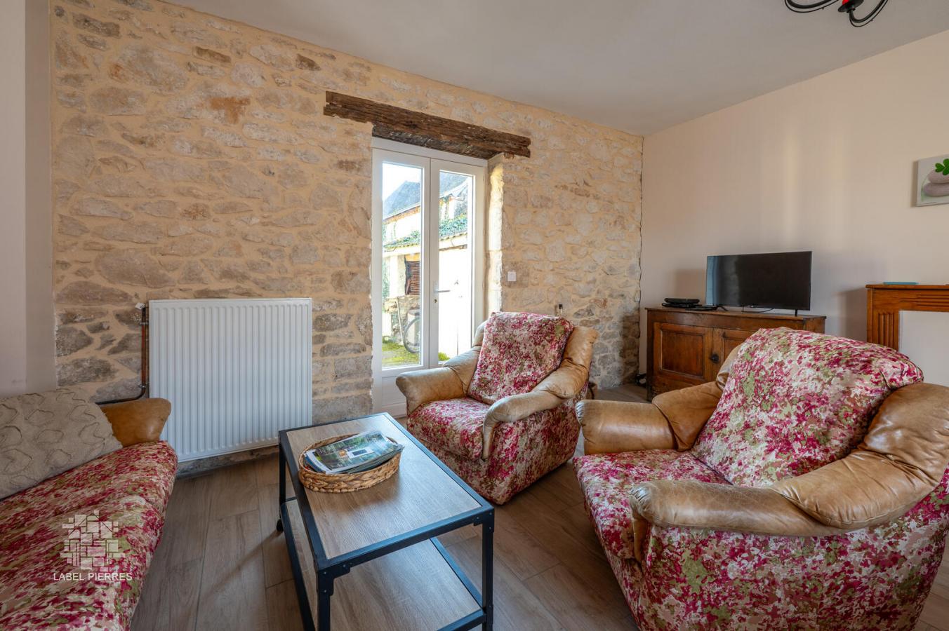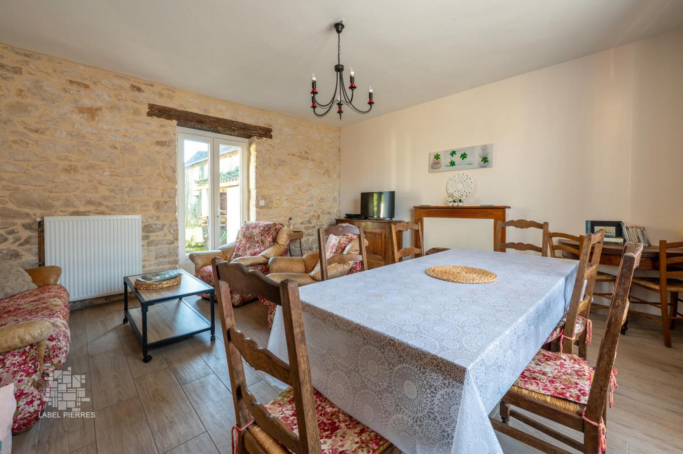 Dans un charmant village de la vallée de la Dordogne, Cette jolie maison en pierre entièrement restaurée avec goût distribue : En rez de jardin : Entrée, cuisine/salle à manger ouverte sur la terrasse et le jardin, salon, wc buanderie. Au premier étage : Palier 2 grandes chambres de 17m², 1 bureau de 8m², salle de douche et wc. Au 2ème étage : Palier de 8m² pouvant recevoir un bureau, 2 chambres, salle d'eau et wc. Double vitrage récent, pompe à chaleur performante. Jardin clos de 315m², tout à l'égout. Plages de la rivière Dordogne à 200 mètres (sans risque d'innondation). Les informations sur les risques auxquels ce bien est exposé sont disponibles sur le site Géorisques: www.georisques.gouv.fr