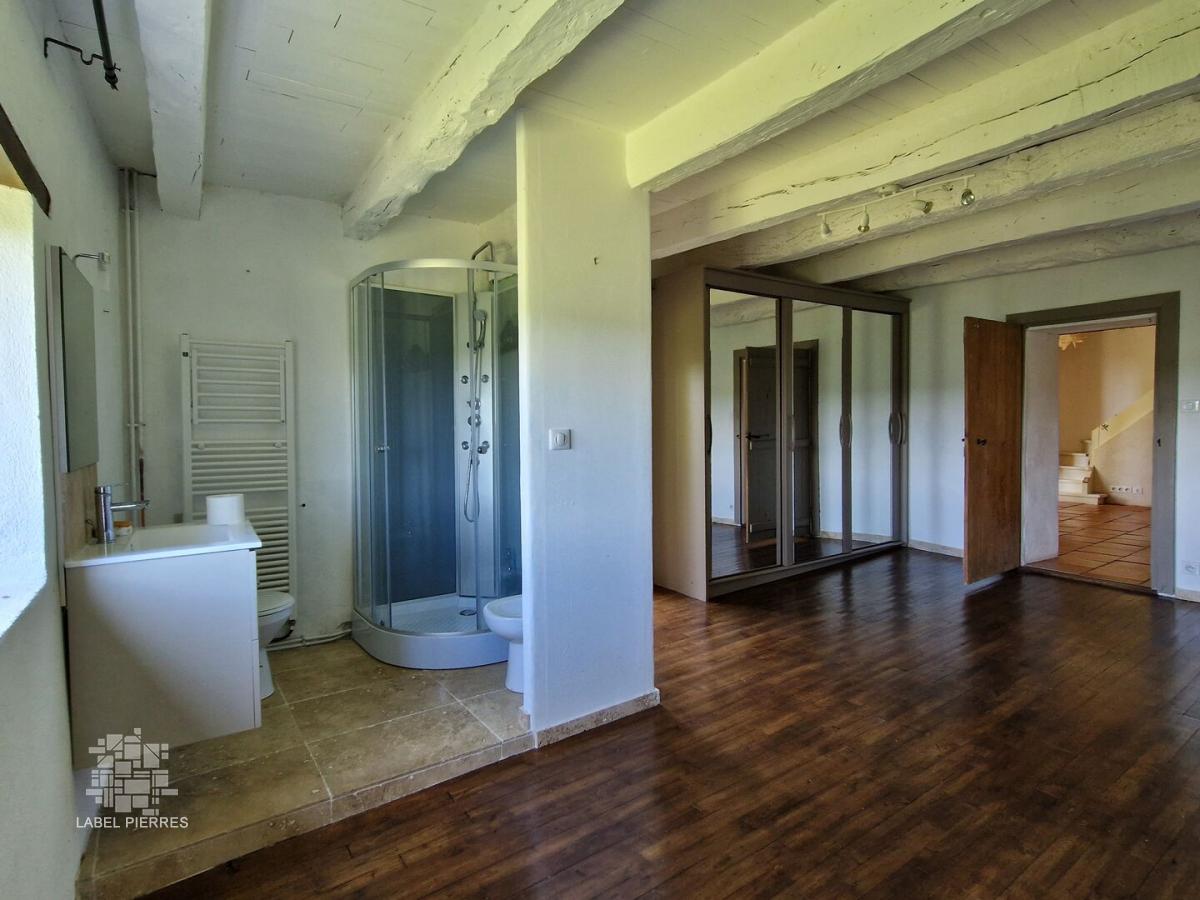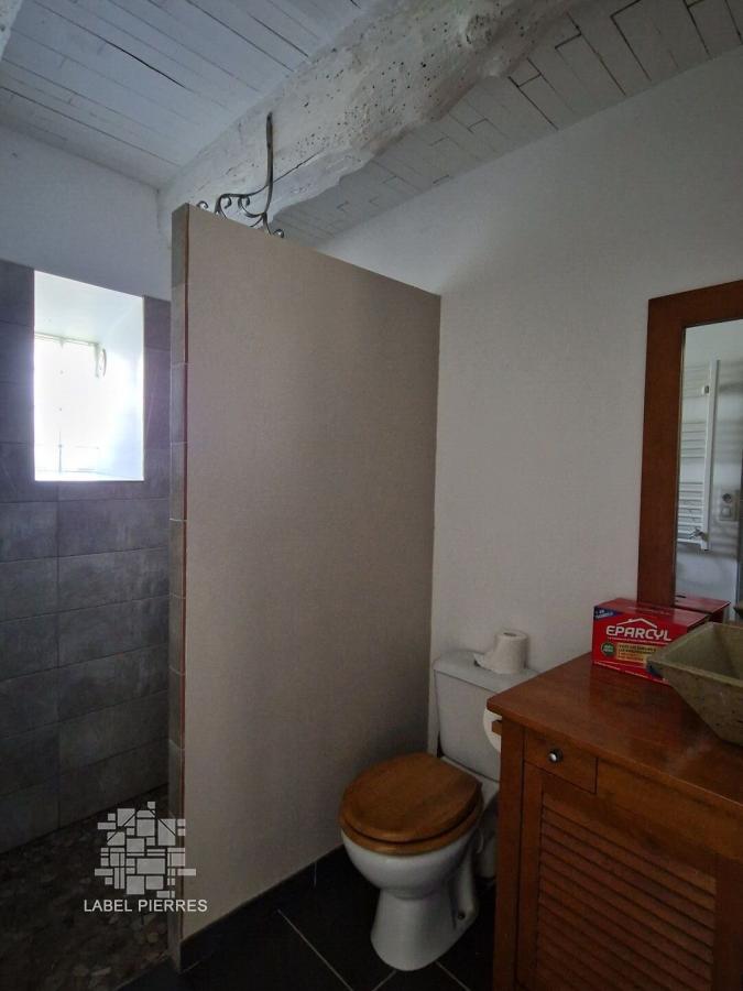 - Chambre d'environ 18m² avec salle de douche, lavabo et wc. Porte donnant sur l'extérieur.