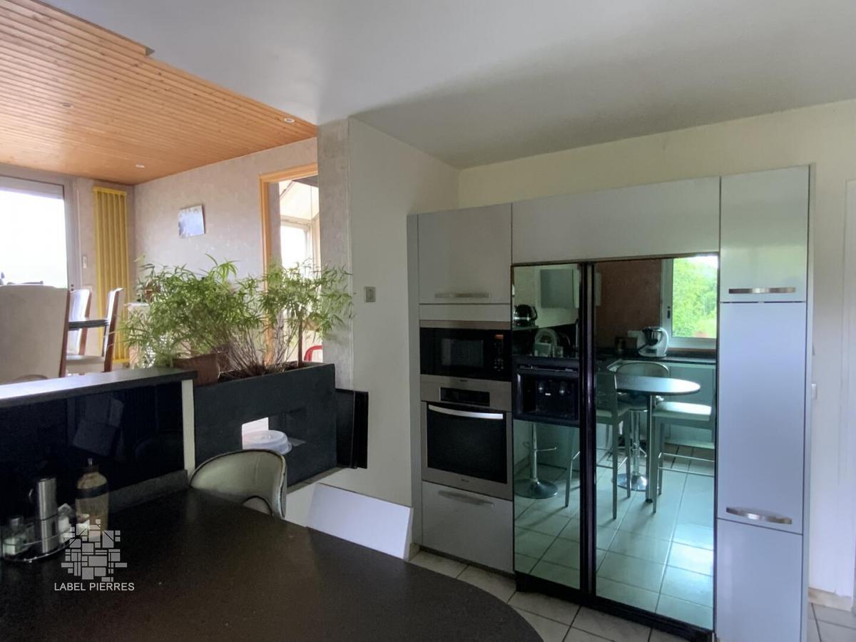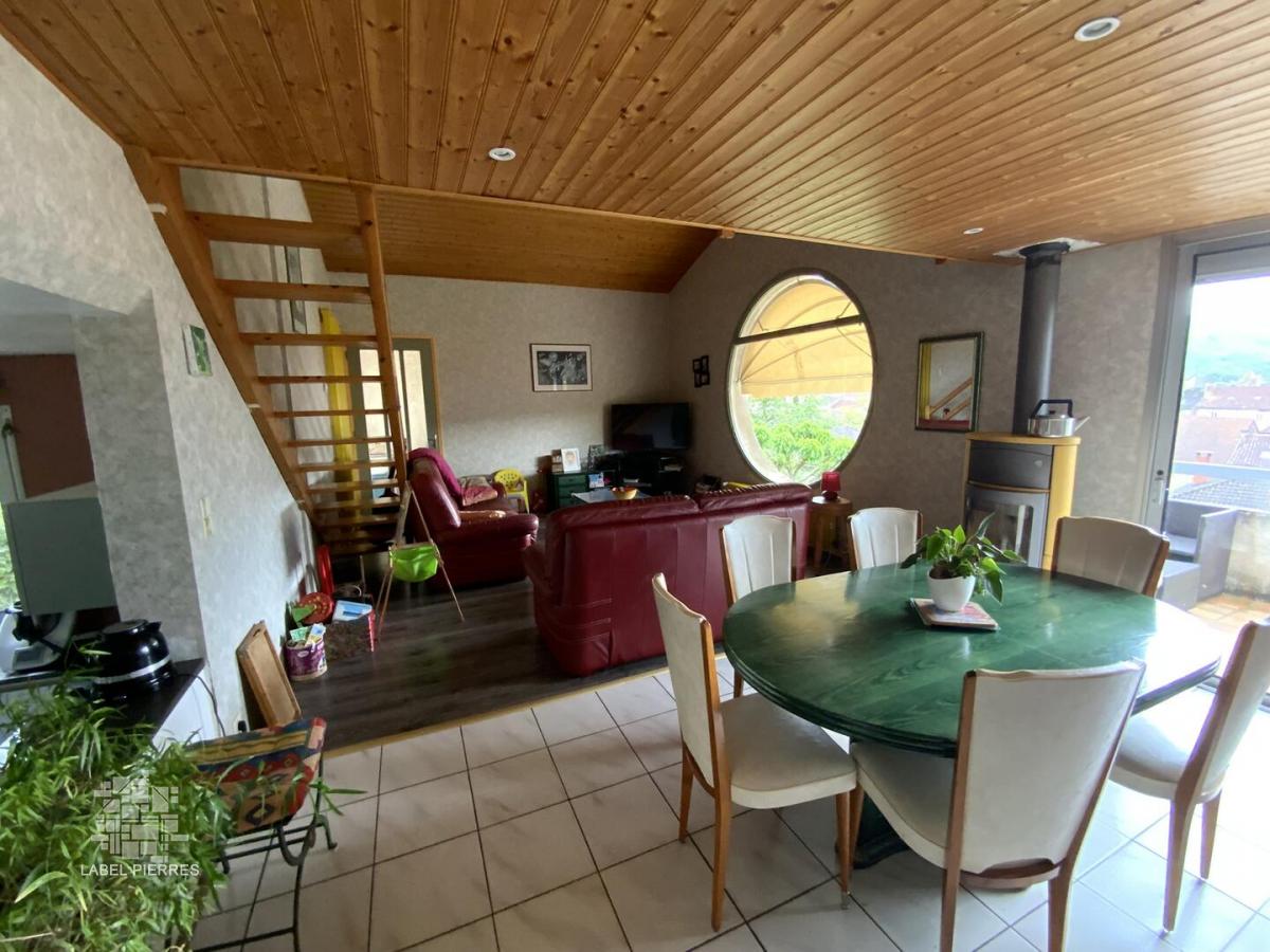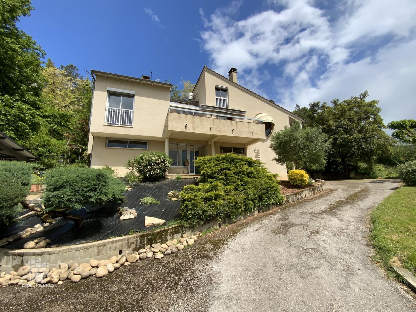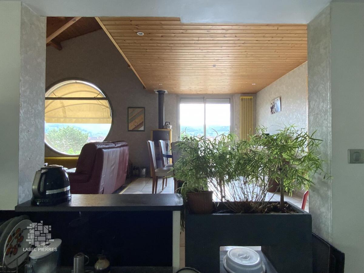Située en position dominante avec un magnifique panorama, cette belle maison d'architecte nichée dans un écrin de verdure saura séduire les amateurs de biens uniques et de caractère. Développant 155 m² habitables, elle propose en rez de chaussée: un grand cellier, un garage et une pièce complémentaire à aménager selon vos envies: salle de sport, atelier... Au 1er étage : une cuisine aménagée et équipée ouverte sur une spacieuse et lumineuse pièce à vivre, une chambre, une belle salle de bain avec baignoire, douche et WC et un bureau de 14 m² transformable aisément en chambre. Au second étage : deux chambres, salle de douche avec WC et un agréable espace cosy en mezzanine . A l’extérieur, le jardin soigneusement aménagé accueille la piscine, son pool house avec cuisine aménagée et toilette et un car port aux dimensions d'une camping car. Les terrasses permettent de profiter du soleil à toute heure de la journée. Une situation idéale qui allie confort, intimité et proximité. Les informations sur les risques auxquels ce bien est exposé sont disponibles sur le site Géorisques: www.georisques.gouv.fr
