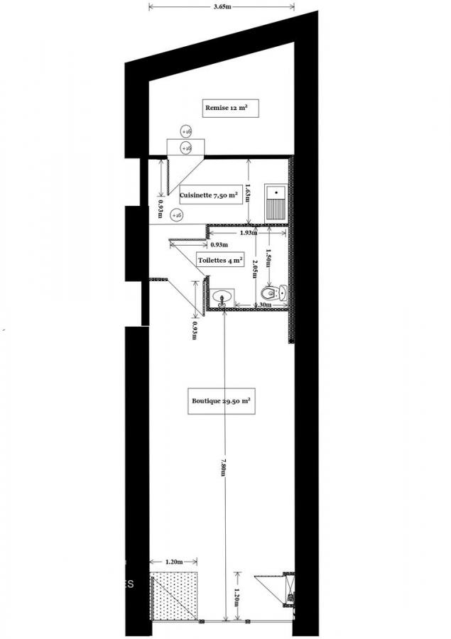 - Commerce 29,50m2 avec vitrine sur rue et faux plafond pour correction acoustique