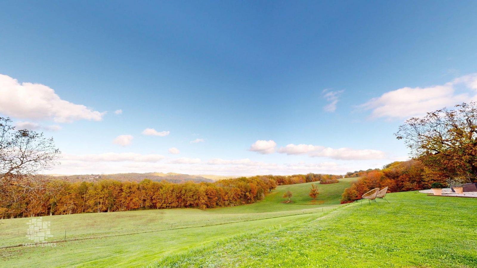Propriété d'exception en Périgord Noir avec vue époustouflante, chambres d'hôtes, gîte, piscine et 27 hectares de forêts et prairies
