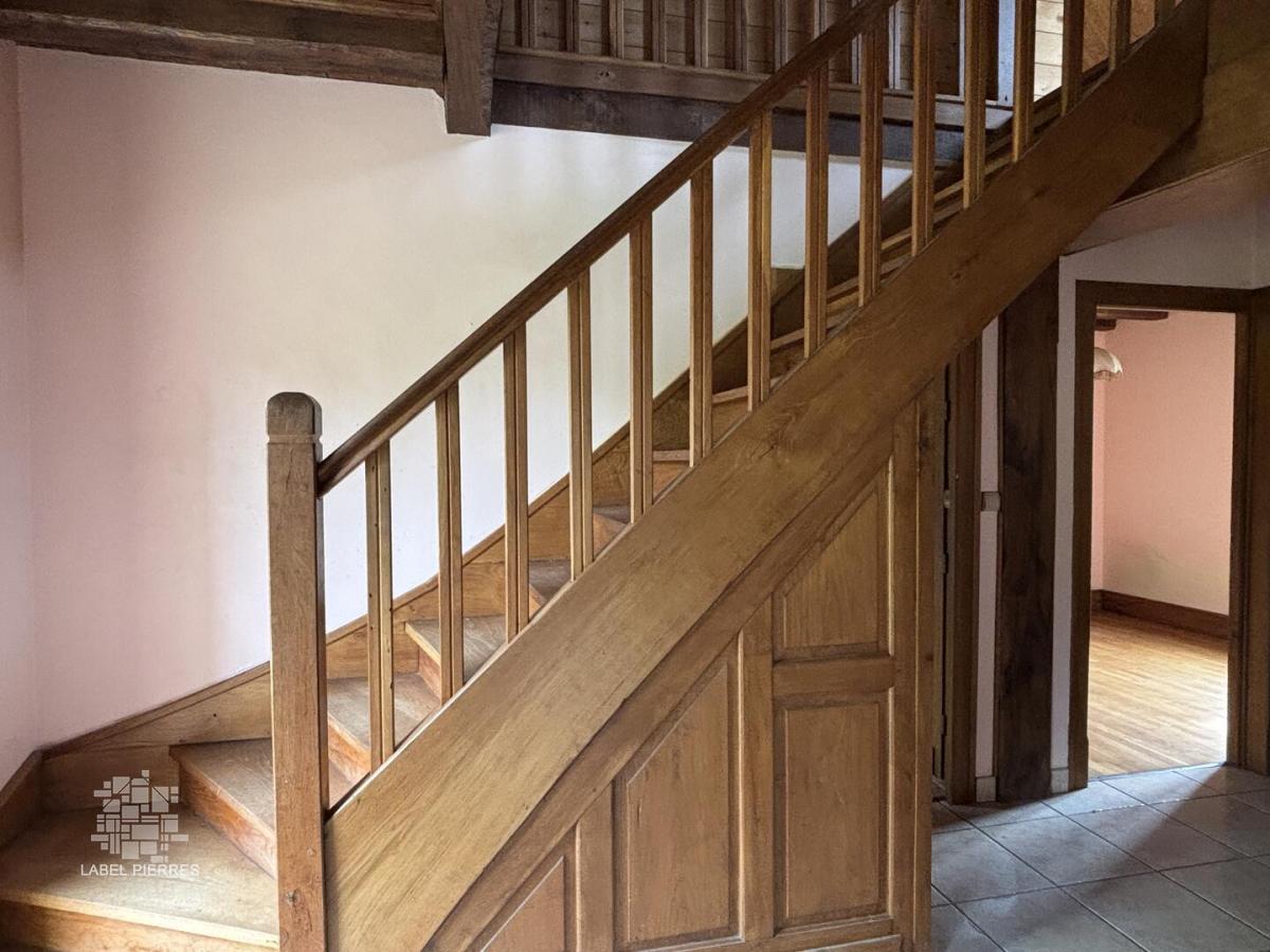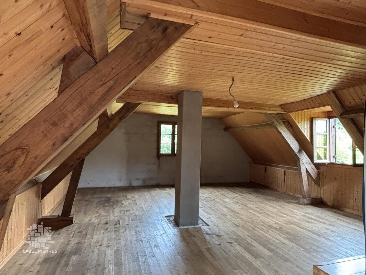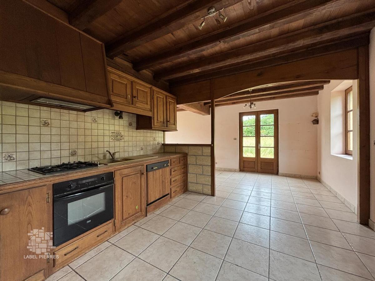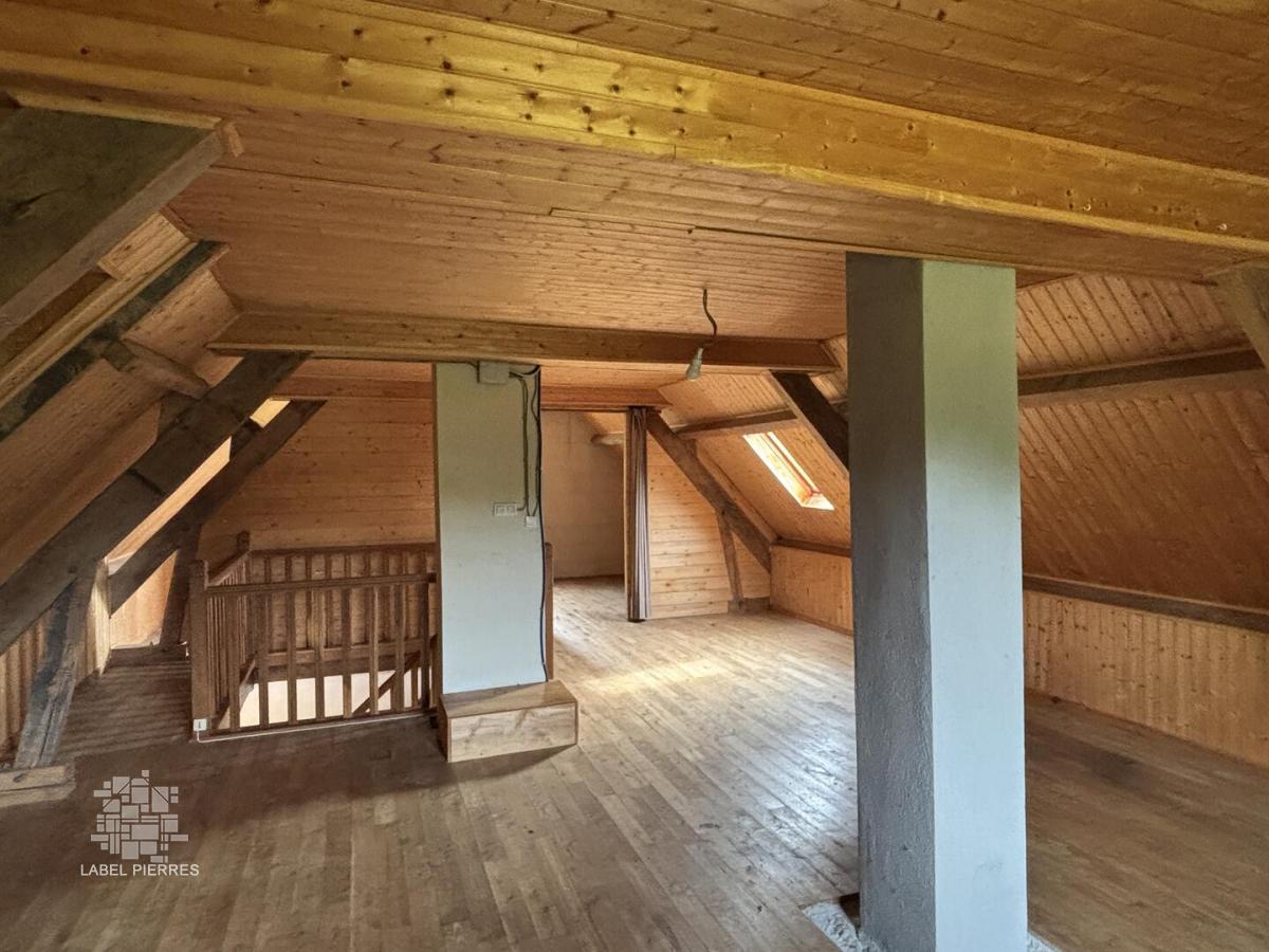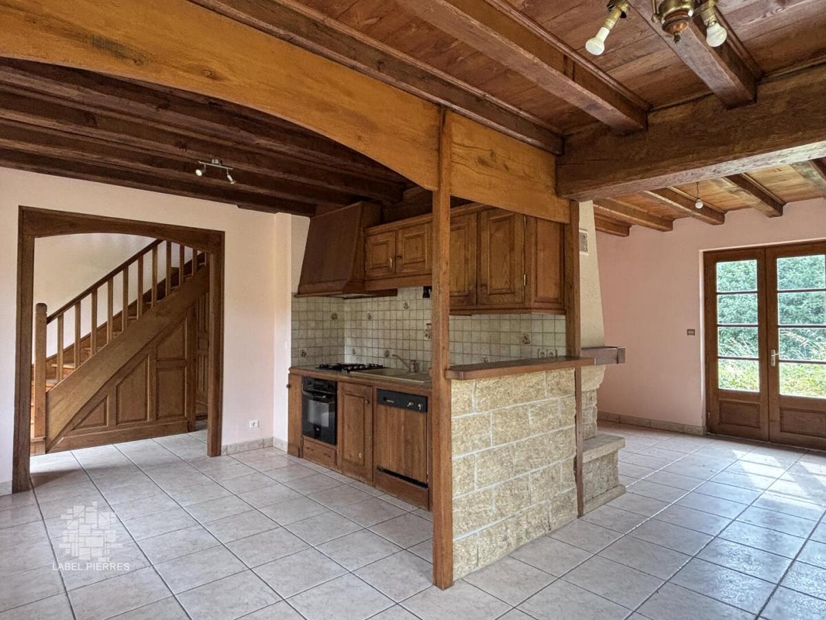 - Pièce à vivre de 40 m² avec cuisine et séjour. poutres apparentes et cheminée.